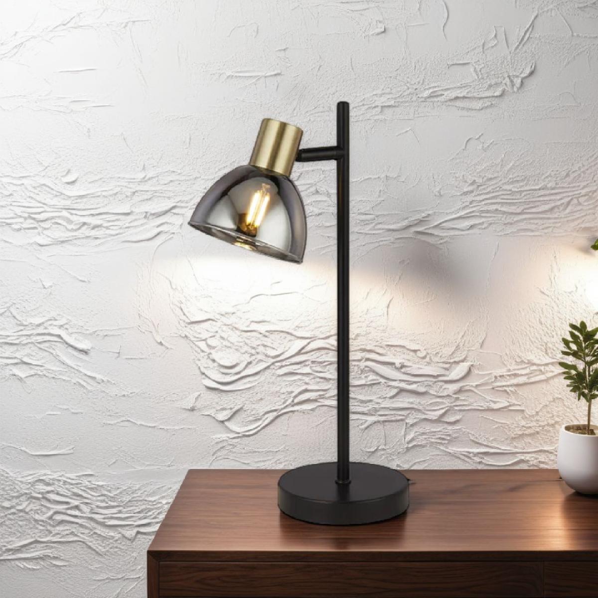 I love this desk lamp for its sleek, contemporary look and versatile styling. The smoked glass adds a subtle touch of sophistication, making it a stylish addition to both modern and minimalist interiors. It works particularly well on a wooden desk or side table in a home office or reading nook, providing focused task lighting without overwhelming the space. For practical styling, consider pairing it with neutral-toned accessories or metallic accents to highlight its modern design, while keeping the surrounding space clutter-free to let the lamp be a statement piece. Its understated elegance makes it easy to incorporate into various colour palettes and decor styles.