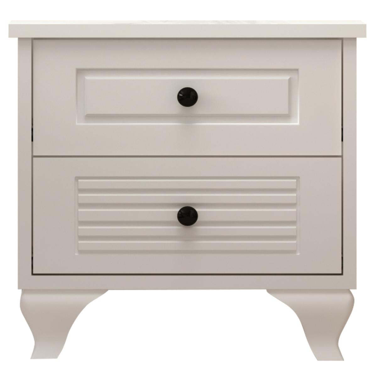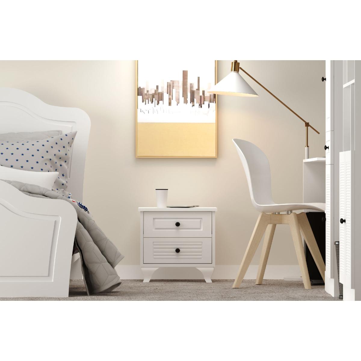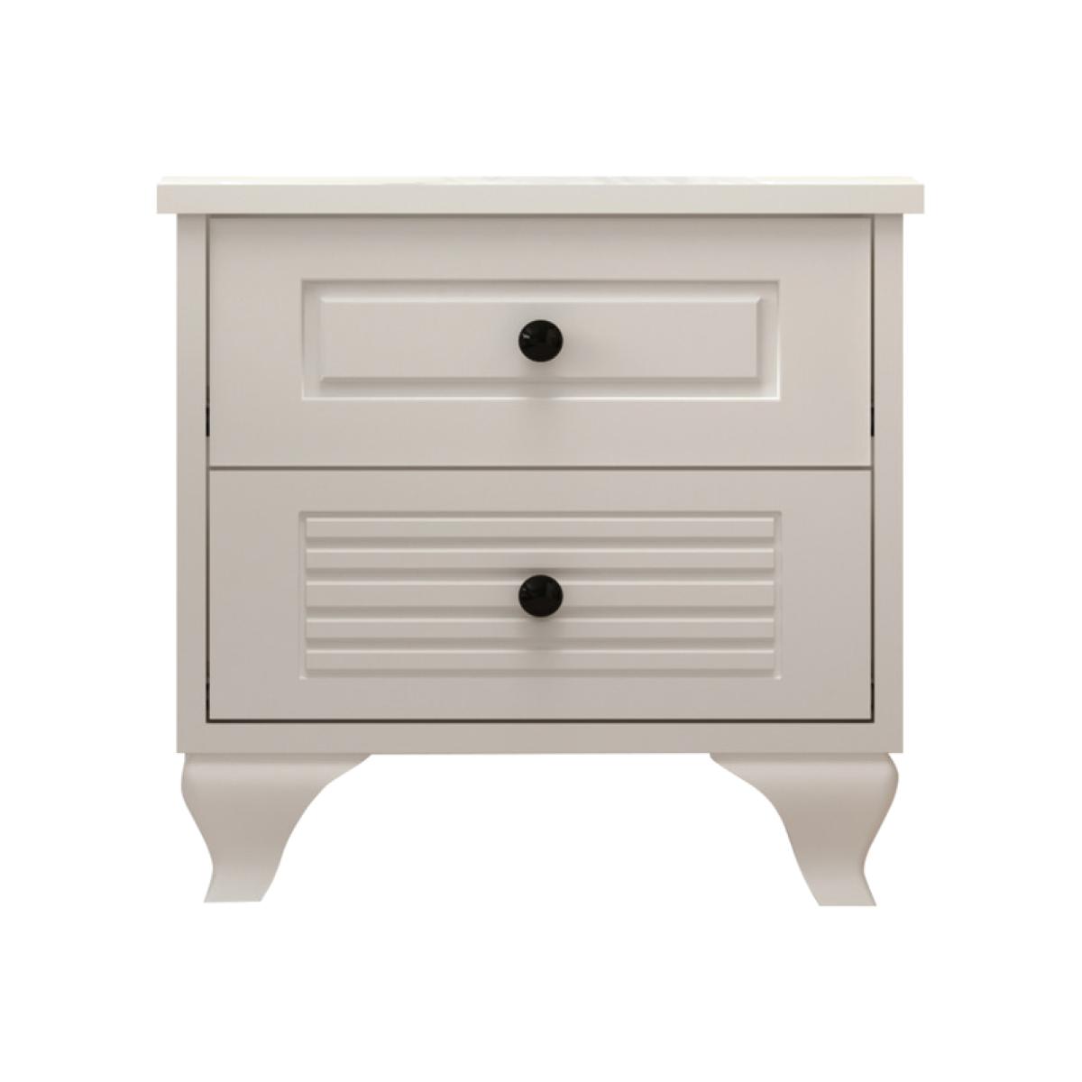Fresh and grand are the best words describes our French inspired ELISE furniture collection. Modern and traditional elements blended with the practicality to create this well-styled range. Featuring two deep drawers, tapered feet and finished with black metal handles it boosts timeless design. Material Membrane coated MDF board, finished with CNC process. Colour White Dimensions Width45cm,Height45cm,Depth40cm.Delivered flat packed in 1x Box..Total Gross Weight12.3kg.