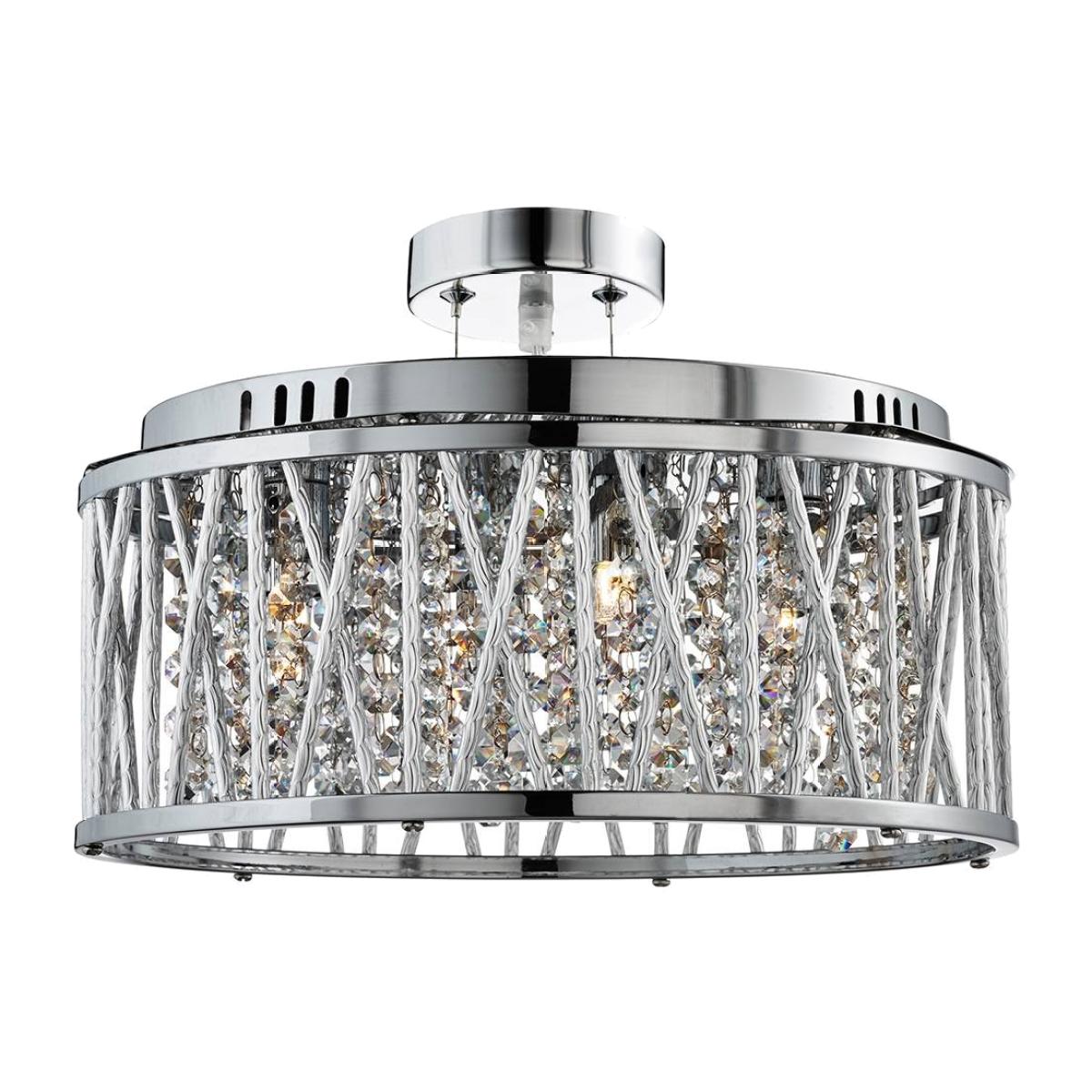 Glamorous Semi Flush crystal ceiling light with polished chrome finish. A stylish ceiling light from guaranteed to make a bold statement in any room of the house. The Elise 5 Light Ceiling Light features a circular ceiling plate and aluminium tube detailing in a criss-cross and straight line fashion around the outside of the fitting. Completing the design are clear crystal button droplets. When lit, the light bounces off the crystals creating a mesmerizing effect throughout the room. We recommend using our 3w LED G9 capsule bulbs which are a great replacement for standard halogen bulbs. Glamorous Semi Flush crystal ceiling light with polished chrome finish. A stylish ceiling light from guaranteed to make a bold statement in any room of the house. The Elise 5 Light Ceiling Light features a circular ceiling plate and aluminium tube detailing in a criss-cross and straight line fashion around the outside of the fitting. Completing the design are clear crystal button droplets. When lit, the light bounces off the crystals creating a mesmerizing effect throughout the room. We recommend using our 3w LED G9 capsule bulbs which are a great replacement for standard halogen bulbs.