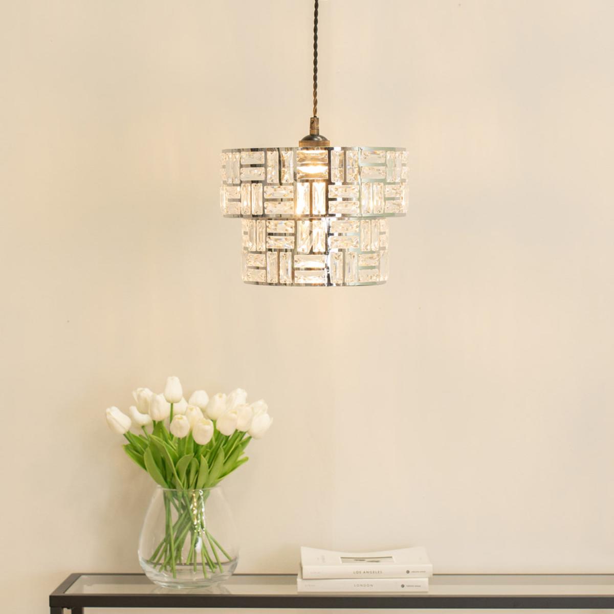 This pair of Elise pendant shades are all glitz and glamour, ready to add elegance to any space. Designed to easily fit any standard pendant ceiling lights, the glow from the acrylic panels creates a warm and cosy lighting effect.