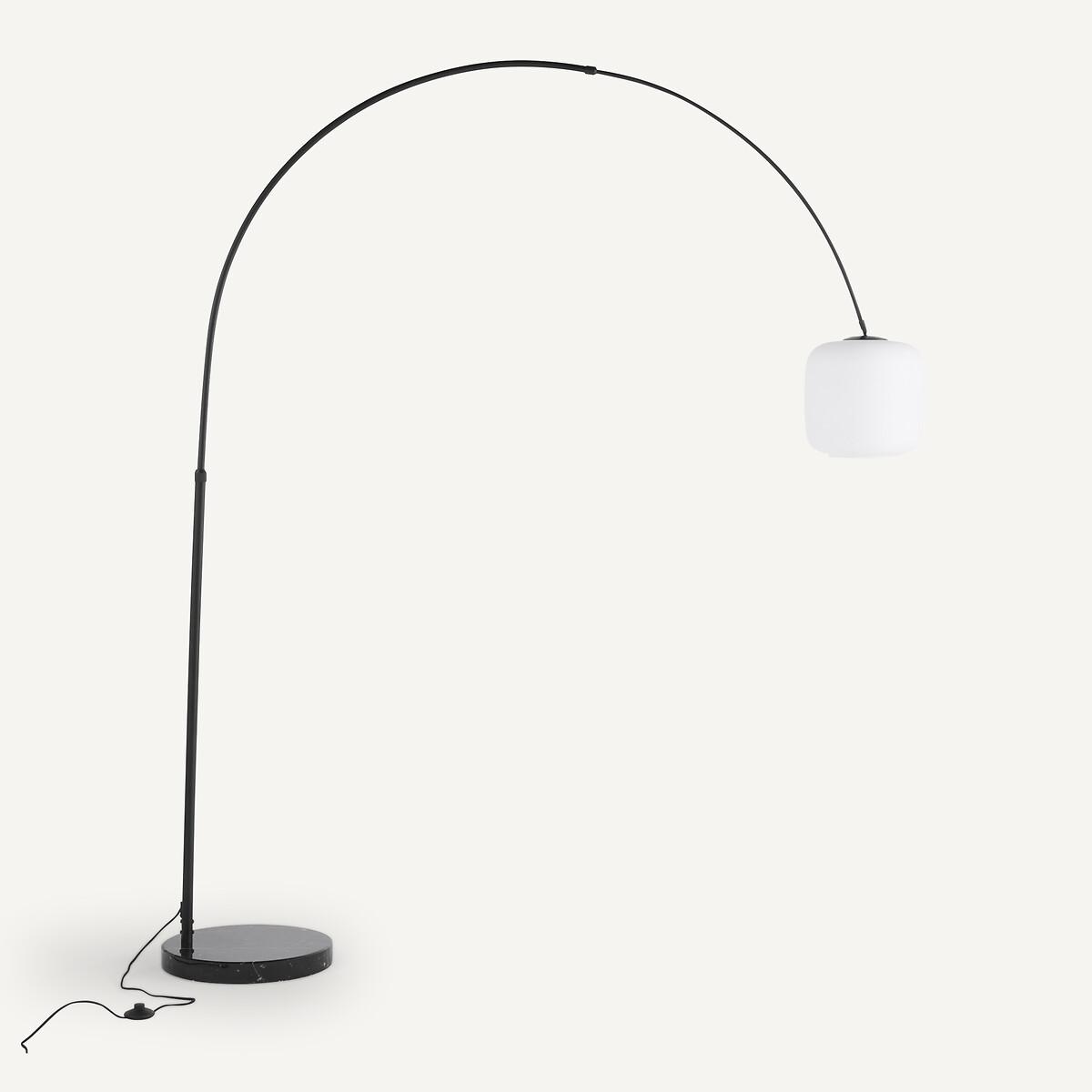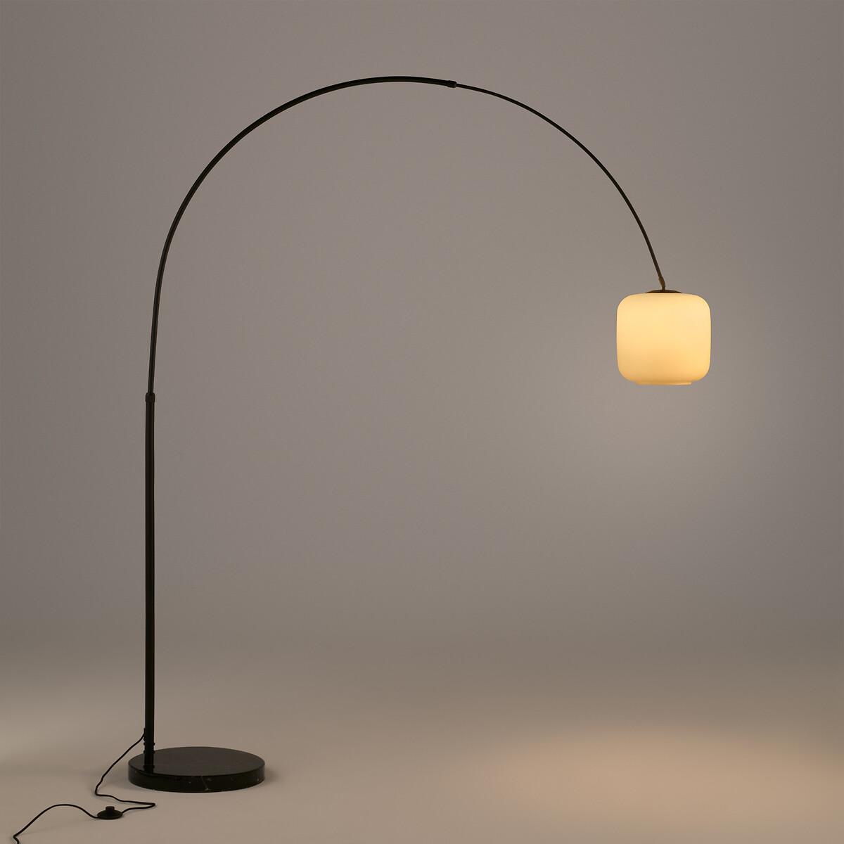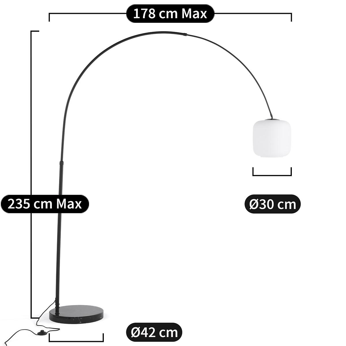 An arc shape, an amber marble base and a matte opaline globe. All curves, elegant and refined, the Elita floor lamp, created by AMPM designers, provides offset lighting and diffuses a soft light. Its adjustable arc shape allows the light globe to overhang the dining table or living room, directing the light evenly. Product Details • Iron pole with matte black epoxy finish • Amber marble base, each piece is unique • Matte opaline glass globe • E27 socket for 8W max bulb (not supplied) • Textile sheathed electric cableDimensions. Adjustable: • Max depth. : 1.78m • Max height. : 2.35m • Globe:Diameter 30 x H29.5cm • Base : Diameter 42 x H5cm • Weight: 22.5kgDelivery:. Assembly required. Available for home delivery. Dimensions and weight of parcel3 parcels • L154 x H15.5 x D43cm. 3.5kg • L36 x H36.5 x D36cm. 2.1kg • L53 x H53.5 x D20cm. 19.4kg