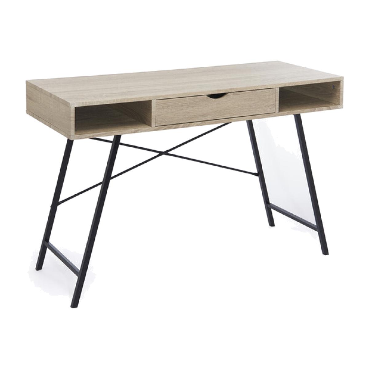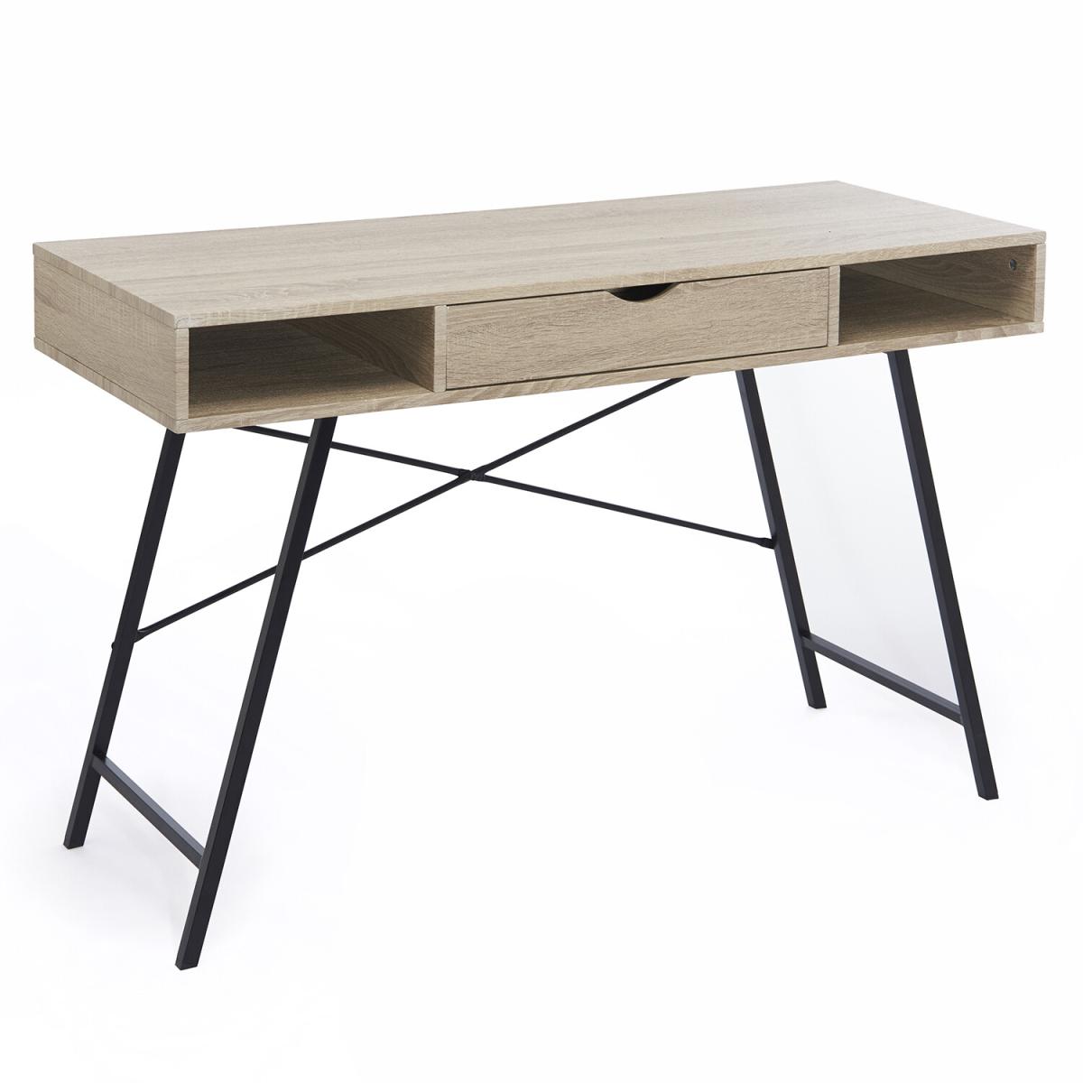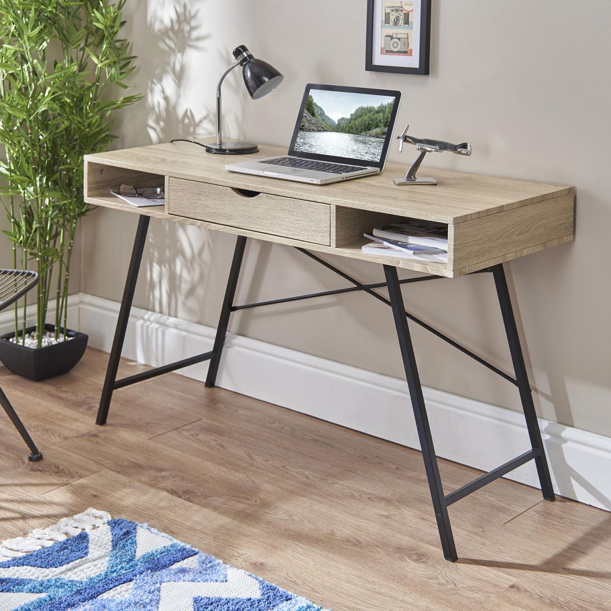 A key component of an essential workspace at home is a reliable desk that is both attractive and functional. The Elite Home Office Desk With Drawer's quaint size makes it ideal for turning unused space in a guest bedroom or living area into a useful workspace. Designed with two open storage spaces and a central single drawer for storing extra stationery, documents, or any small office essentials you want to keep out of sight. Manufactured from a sturdy powder-coated steel frame with a grey wood grain laminated PB top. Home assembly required.