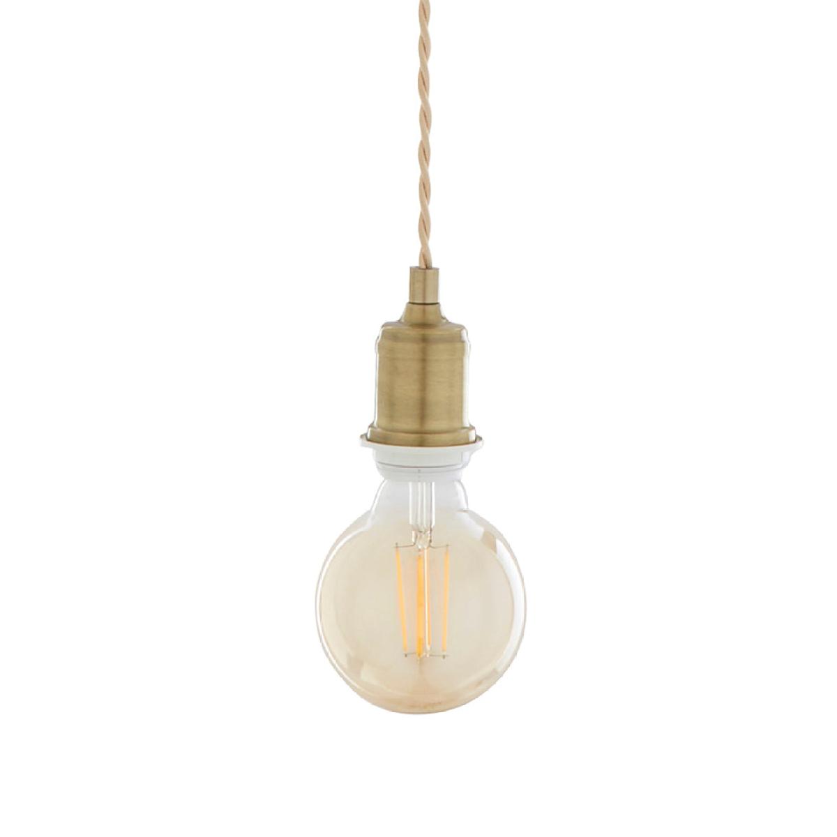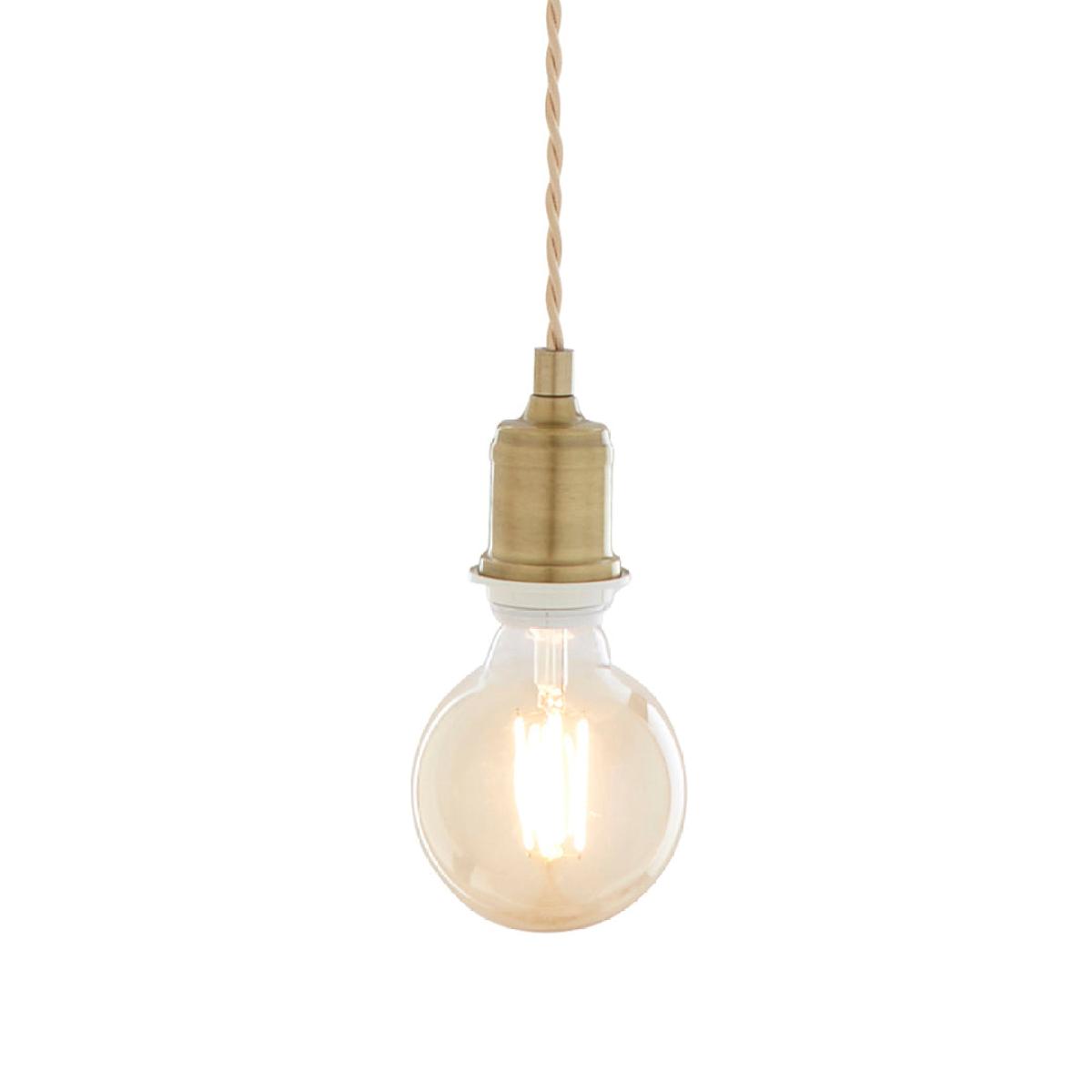 Create your own bespoke lighting look with the Elix Antique Brass Cable Set, a versatile and stylish pendant fitting designed to suit a wide range of interiors. Each set features a coordinating twisted antique brass fabric flex paired with a matching antique brass ES lamp holder, offering a sleek, minimalist aesthetic that works beautifully with modern, industrial, or vintage décor. The Elix Cable Set gives you complete creative freedom: Use it simply with any decorative ES bulb, or pair it with an easy-fit shade to craft a personalised lighting combination that reflects your style. Coordinating twisted fabric flex and ES lamp holder Compatible with any ES/E27 bulb Flex can be shortened by a qualified electrician Please note: item cannot be returned once the cable has been modified