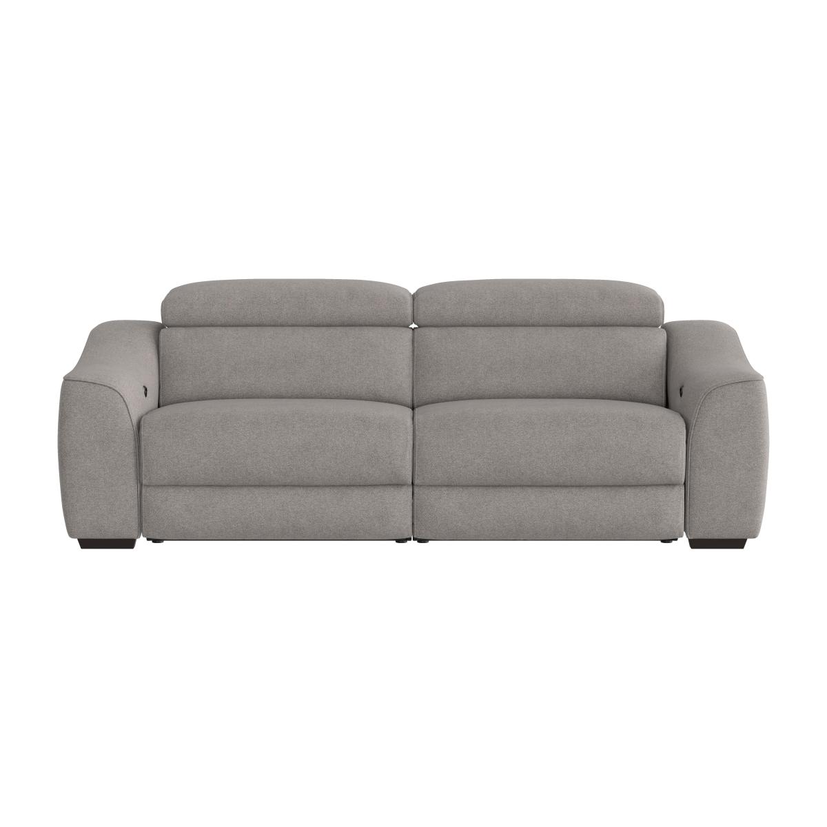The Elixir modular collection is the essence of sleek, contemporary, comfortably cushioned elegance. Choose between 100% premium leather or soft to the touch woven fabric upholstery. Adjustable headrests allow low back style or high back support. The distinctively curved arms are accentuated by contrasting or matching piping, while chrome accents add to the high-end style. Exclusive to Furniture Village, with the option of power or manual recliners. The beautifully contemporary Elixir three seater fabric sofa is comfortably cushioned and luxuriously upholstered in soft to the touch woven fabric upholstery with feature stitching and chrome accents. This gorgeous large sofa has wide, distinctively curved arms and gorgeous pewter-effect feet. You can tell just by looking at the Elixir that comfort is paramount. Relax and enjoy the deep, high-density foam with fibre cushioning and no-sag spring seats. This sofa has a fashionably low profile, but thanks to the adjustable headrests can have high-backed comfort whenever you need it. You can even put your feet up with optional power or manual recliners – the power recliners have useful USB ports. The Elixir three seater fabric sofa is part of the Elixir collection, exclusive to Furniture Village. Top Tip. To keep your fabric sofa or chair looking good, plump the seat and back cushions and any scatter cushions regularly, and – where possible – turn and rotate to ensure even wear. Plumping and rotation is important as interiors settle over time, and some fabrics can show wear on areas of more use or in direct sunlight. Using a soft brush or vacuuming with the curtain attachment weekly prolongs the life of fabric upholstery. Ideally clean professionally annually. If your sofa or chair is a recliner model, please allow time for the recliner to settle. Minor gaps are necessary for ease of motion, and vary depending on floor type. Manual recliners can feel a little stiff at first, but the motion eases with use.