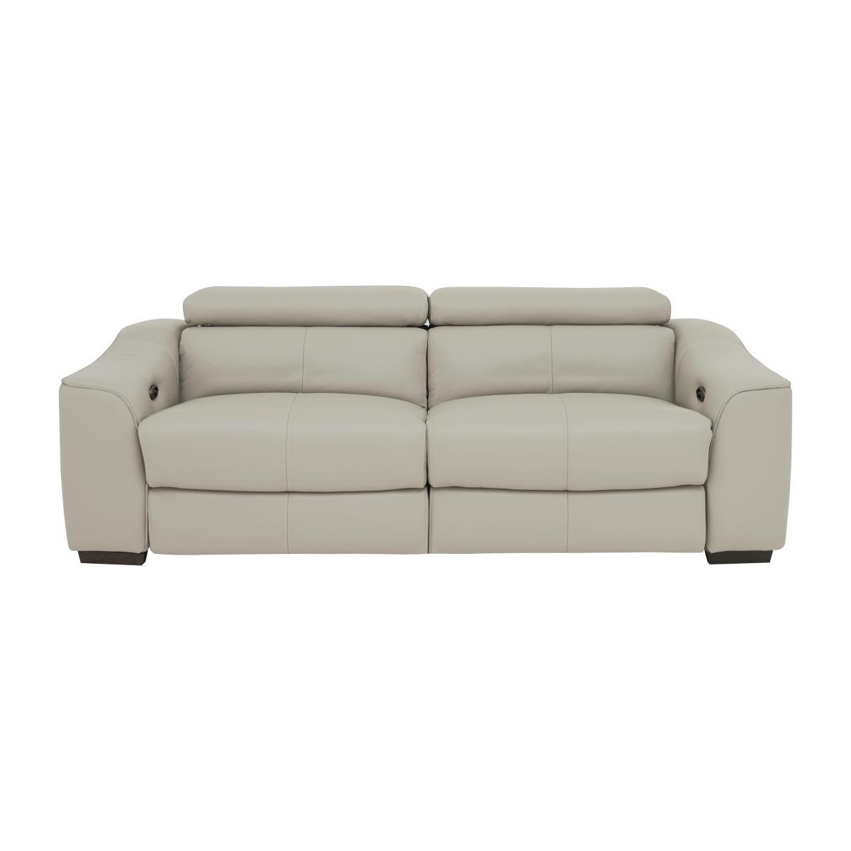 The Elixir modular collection is the essence of sleek, contemporary, comfortably cushioned elegance. Choose between 100% premium leather or soft to the touch woven fabric upholstery. Adjustable headrests allow low back style or high back support. The distinctively curved arms are accentuated by contrasting or matching piping, while chrome accents add to the high-end style. Exclusive to Furniture Village, with the option of power or manual recliners. It’s hard to know where to start when it comes to the benefits of the Elixir three seater leather sofa. This large contemporary sofa looks beautiful, with clean gently curved modern lines. Even better, it’s luxuriously upholstered in soft premium leather with feature stitching and chrome accents. You can choose your favourite colour and either contrasting or matching piping. This large leather sofa has plenty of style with wide, distinctively curved arms and gorgeous pewter-effect feet. The style is matched with incredible comfort, thanks to the deep, high-density foam with fibre cushioning and no-sag spring seats. Adjustable headrests mean you can enjoy high-backed comfort whenever you need it, and you can – if you wish – put your feet up with optional power or manual recliners – the power recliners have useful USB ports. The Elixir three seater leather sofa is part of the Elixir collection, exclusive to Furniture Village. Did you know?. Leather is a beautiful, natural material with its own unique marks and characteristics, so texture, tone and colour can vary slightly in and between panels. Leather stretches, softens and settles with use. When you sit on a new leather sofa or chair it’s normal for the leather to ‘puddle’ slightly due to initial stretching. A simple smoothing of the leather across the top of the seat cushion if this occurs keeps your sofa or chair looking good. Interiors settle over time so, to maximise comfort, please plump the seat and back cushions regularly, and – where possible – turn and rotate to ensure even wear. Wipe leather upholstery with a damp cloth, and please use only the recommended cleaning products. If your sofa or chair is a recliner model, please allow time for the recliner to settle. Minor gaps are necessary for ease of motion, and vary depending on floor type. Manual recliners can feel a little stiff at first, but the motion eases with use.