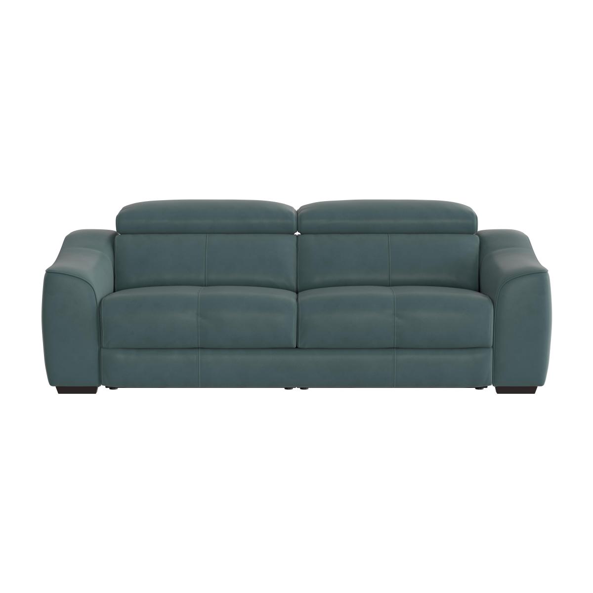 The Elixir modular collection is the essence of sleek, contemporary, comfortably cushioned elegance. Choose between 100% premium leather or soft to the touch woven fabric upholstery. Adjustable headrests allow low back style or high back support. The distinctively curved arms are accentuated by contrasting or matching piping, while chrome accents add to the high-end style. Exclusive to Furniture Village, with the option of power or manual recliners. The Elixir three seater leather sofa bed looks so good as a large and luxurious sofa, with its gently curved contemporary lines, it’s hard to believe it’s also a sofa bed. From its soft premium leather upholstery with feature stitching to its chrome accents, wide arms and pewter effect feet it is stylish through and through. Choose your favourite colour and either contrasting or matching piping. As a sofa, it’s very comfortable with deep, high-density foam with fibre cushioning and no-sag spring seats – and the manually adjustable headrests mean you can enjoy high-backed comfort whenever you need it. The sofa opens with an easy three-fold mechanism to reveal a comfy double bed with a sprung mattress – perfect for your overnight guests. The Elixir three seater leather sofa bed is part of the Elixir collection, exclusive to Furniture Village. Mattress depth 12cm. Top tip. For easy sofa bed operation please follow the instructions provided.