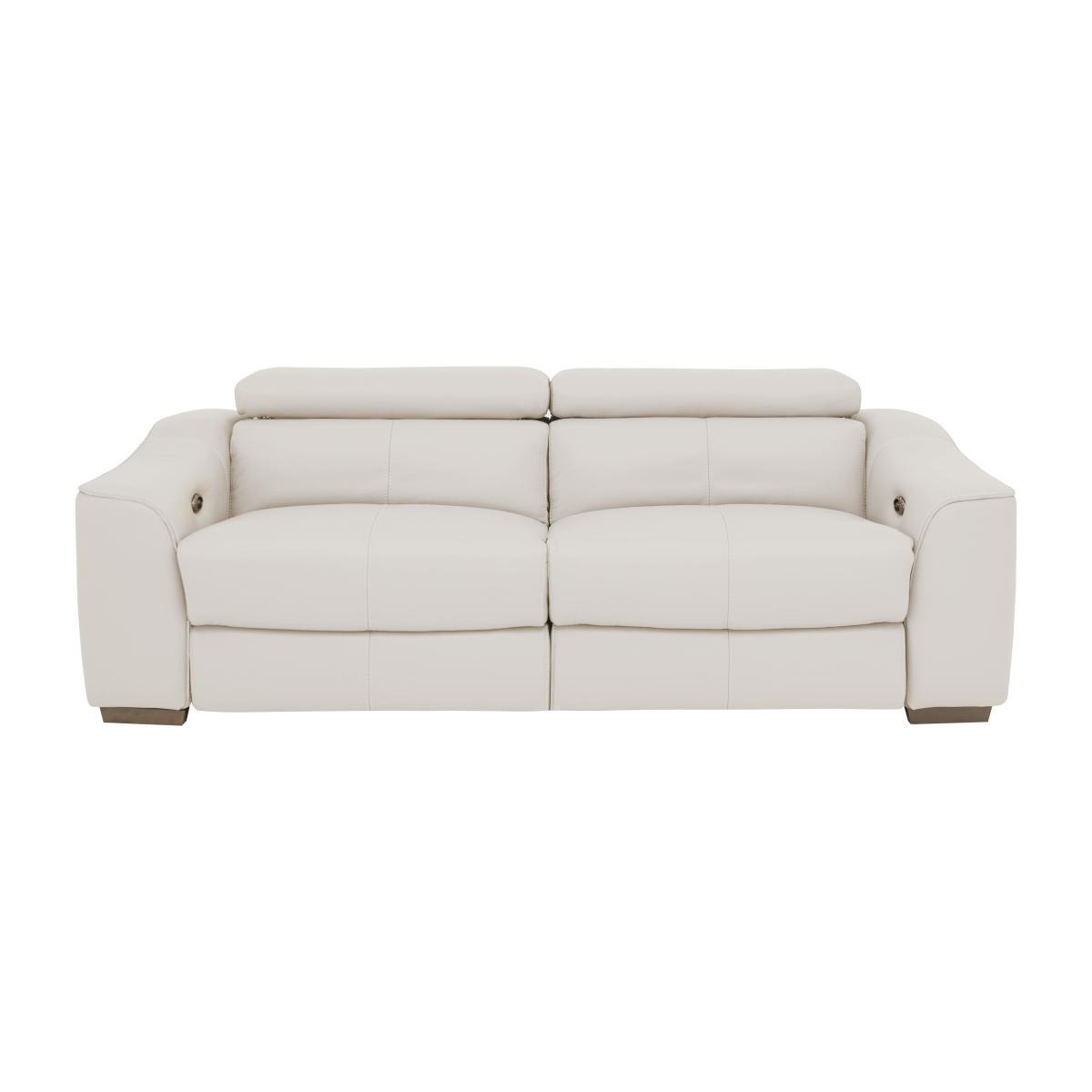 The Elixir modular collection is the essence of sleek, contemporary, comfortably cushioned elegance. Choose between 100% premium leather or soft to the touch woven fabric upholstery. Adjustable headrests allow low back style or high back support. The distinctively curved arms are accentuated by contrasting or matching piping, while chrome accents add to the high-end style. Exclusive to Furniture Village, with the option of power or manual recliners. It’s hard to know where to start when it comes to the benefits of the Elixir three seater leather sofa. This large contemporary sofa looks beautiful, with clean gently curved modern lines. Even better, it’s luxuriously upholstered in soft premium leather with feature stitching and chrome accents. You can choose your favourite colour and either contrasting or matching piping. This large leather sofa has plenty of style with wide, distinctively curved arms and gorgeous pewter-effect feet. The style is matched with incredible comfort, thanks to the deep, high-density foam with fibre cushioning and no-sag spring seats. Adjustable headrests mean you can enjoy high-backed comfort whenever you need it, and you can – if you wish – put your feet up with optional power or manual recliners – the power recliners have useful USB ports. The Elixir three seater leather sofa is part of the Elixir collection, exclusive to Furniture Village. Did you know?. Leather is a beautiful, natural material with its own unique marks and characteristics, so texture, tone and colour can vary slightly in and between panels. Leather stretches, softens and settles with use. When you sit on a new leather sofa or chair it’s normal for the leather to ‘puddle’ slightly due to initial stretching. A simple smoothing of the leather across the top of the seat cushion if this occurs keeps your sofa or chair looking good. Interiors settle over time so, to maximise comfort, please plump the seat and back cushions regularly, and – where possible – turn and rotate to ensure even wear. Wipe leather upholstery with a damp cloth, and please use only the recommended cleaning products. If your sofa or chair is a recliner model, please allow time for the recliner to settle. Minor gaps are necessary for ease of motion, and vary depending on floor type. Manual recliners can feel a little stiff at first, but the motion eases with use.