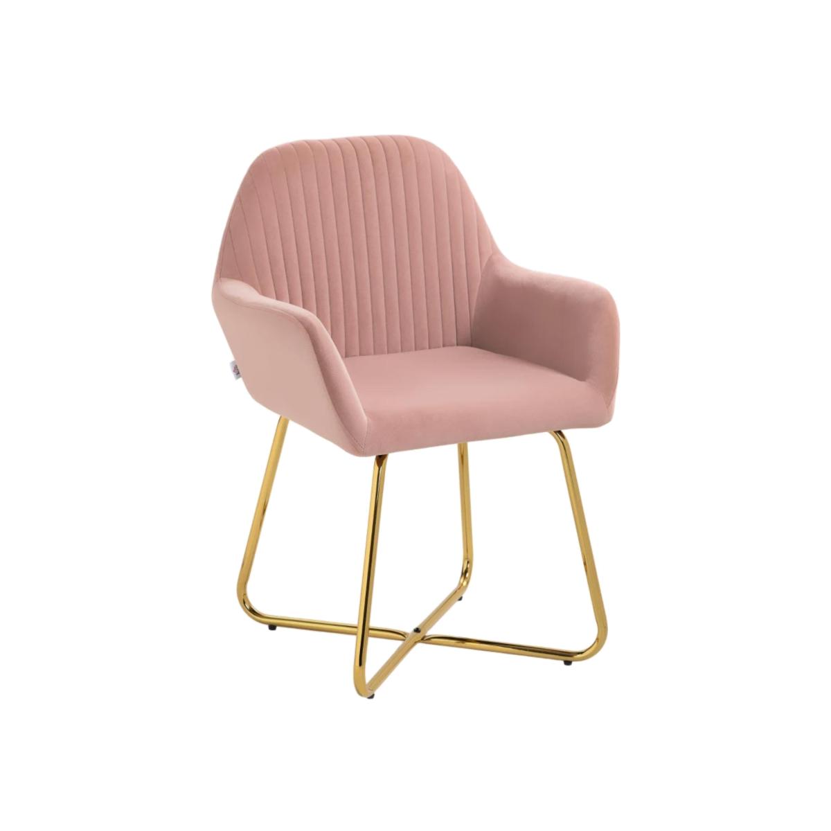 With its curved silhouette complete with a scalloped back design, this stunning armchair offers a glamorous, art deco inspired design and would be the perfect statement piece for your home. This part assembly chair features a comfortable seat and backrest to provide luxurious comfort and comes complete with stunning gold coloured metal legs. The seat is crafted into a smoothly curved shape, which is rounded at the back but becomes boxy at the front, attached to the criss-cross bass. It's a striking look which serves well as an accent piece. This elegant armchair is upholstered in a smooth velvet style fabric.