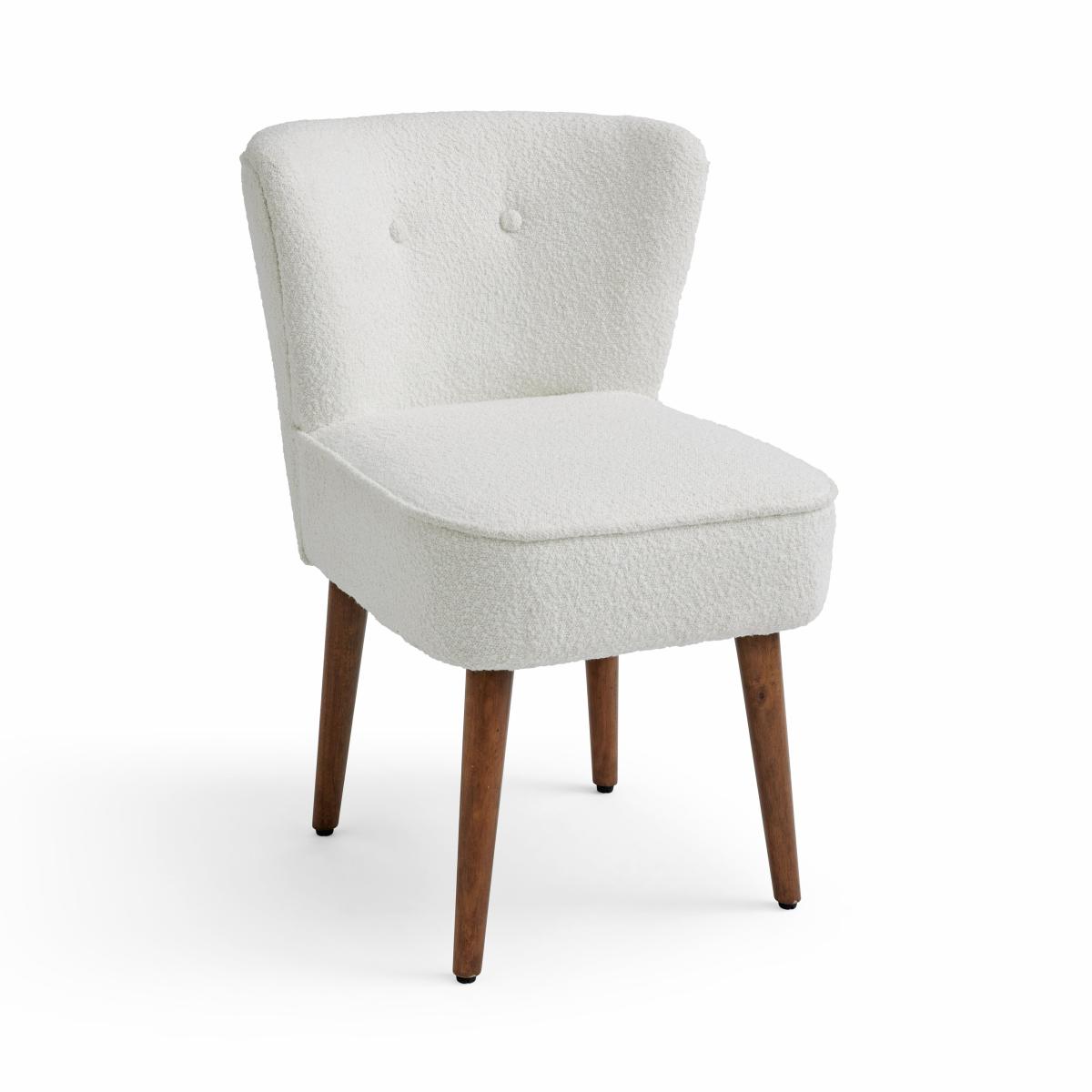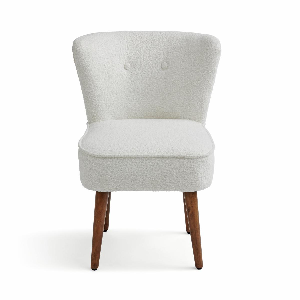I’m a fan of the Eliza chair for its softly curved silhouette and durable bouclé fabric - it brings a tactile, neutral tone that works equally well in Scandi-inspired, mid-century or contemporary settings. The warm wooden legs tie in neatly with an oak dining table or sideboard, while the ivory boucle softens darker floors and bold walls. For practical styling, group four around a simple light-wood table and top with amber glassware or brass accessories to introduce a subtle colour contrast. Keep linens neutral or add a single muted cushion in soft grey or sage for a hint of colour without overpowering the chair’s refined texture.