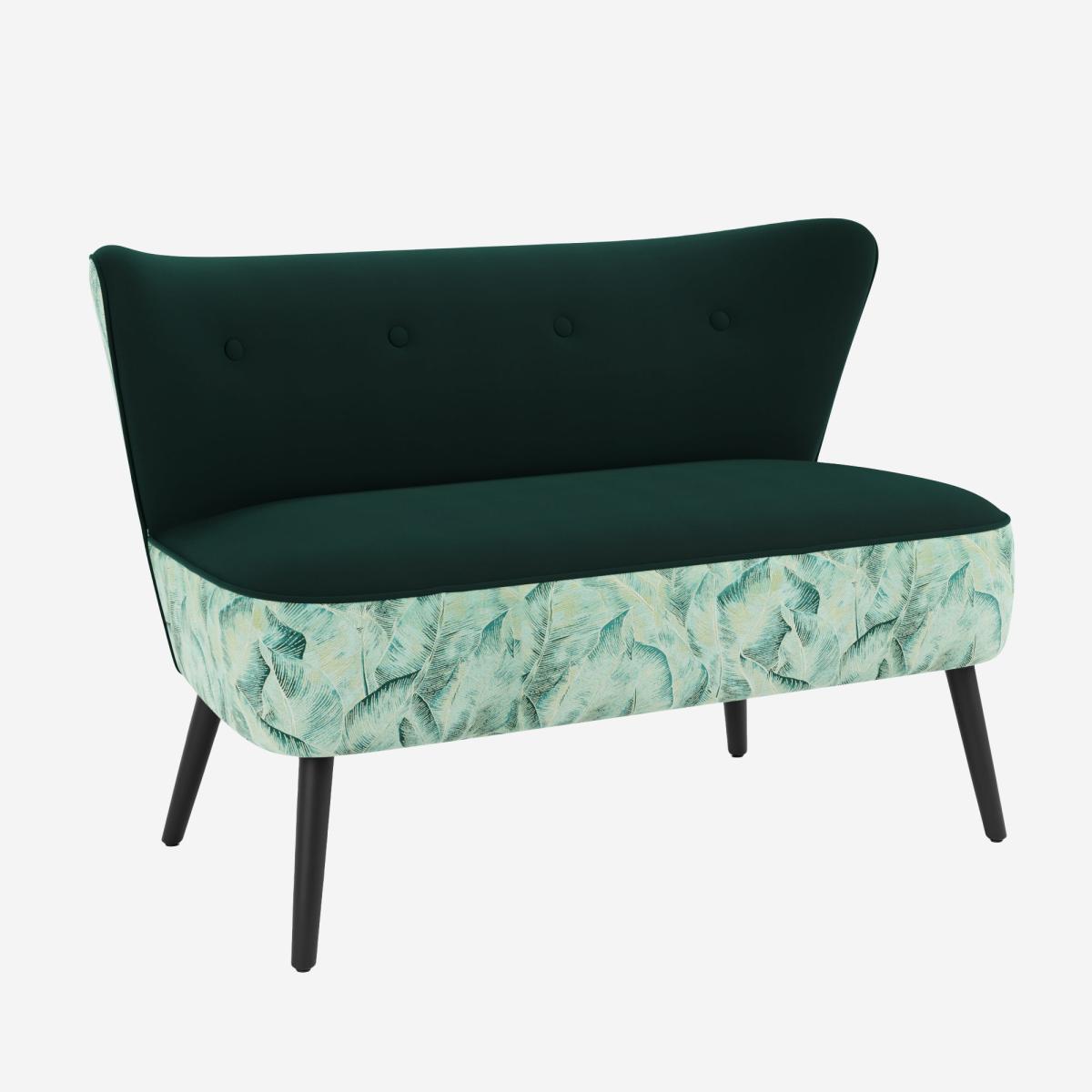 The stylish Eliza 2 Seater Sofa is a compact yet trendy addition in any home and is perfect for smaller spaces and apartments. The tropical leaf print jacquard and contrasting soft velvet upholstery adds a stylish twist to this sofa to elevate the style of any space, while the foam and fibre-filled seats provide a comfortable spot to relax.