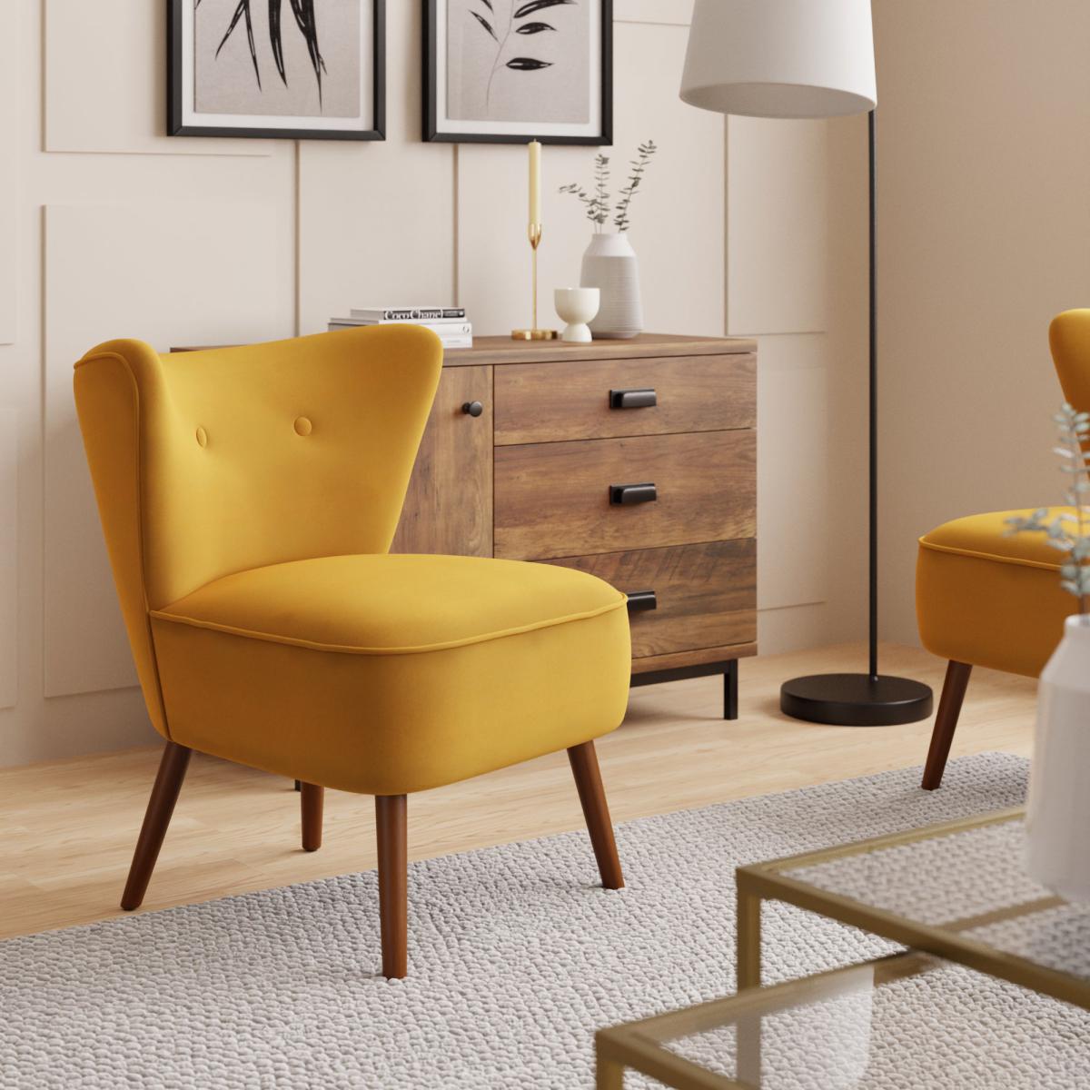I love this green velvet armchair for its rich texture and timeless appeal - it instantly adds a sense of warmth and sophistication to any room. The old gold hue is versatile enough to work in both modern and more traditional interiors, especially when styled with neutral tones or complementary jewel shades. For practical tips, consider using it as a statement piece in a cosy corner or as a pop of colour in a neutral living room. Pairing it with wooden or brass accents will enhance its luxe feel, while keeping accessories minimal will let the chair shine as a focal point.
