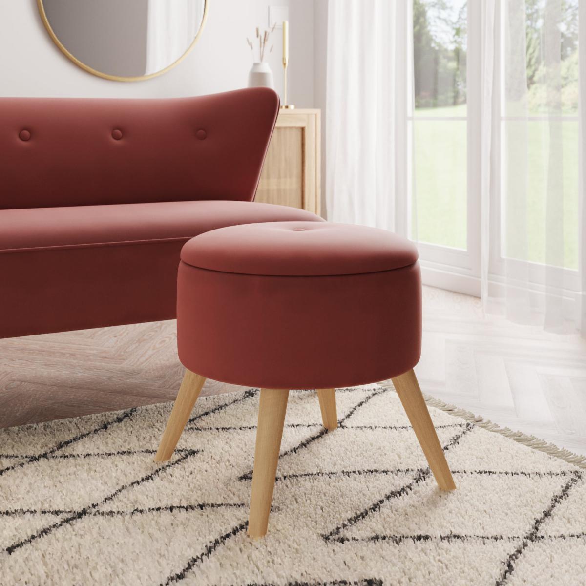 Perfect for compact living spaces, the Eliza Velvet Storage Footstool offers the perfect place to put your feet up. This handy footstool is comfortable and practical, it features a lift up top to reveal a spacious storage space that is perfect for remotes. This stylish Eliza footstool is upholstered in a soft touch velvet fabric with button detailing and is paired with four sturdy wooden legs. This footstool is available in a choice of trendy colours to suit your space.