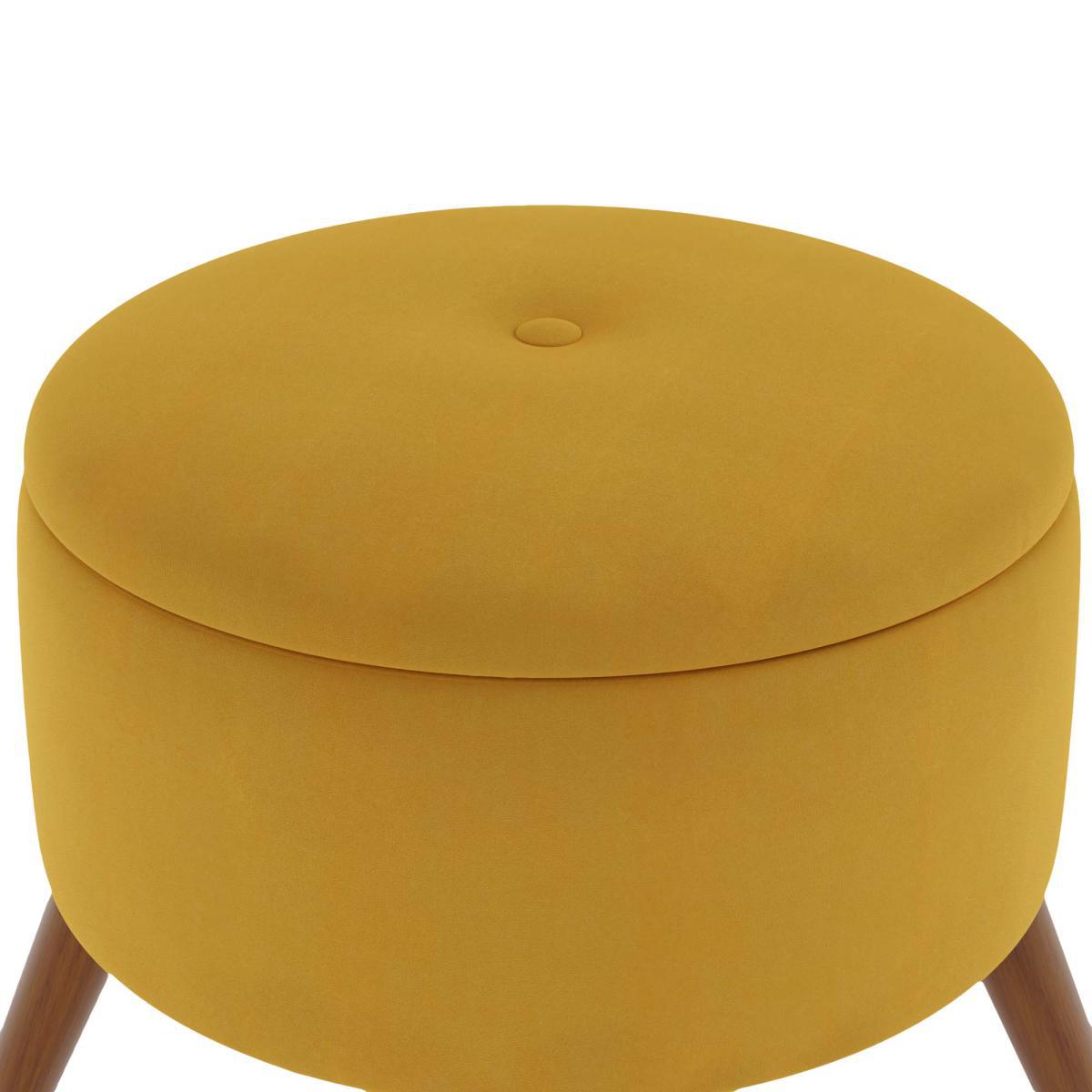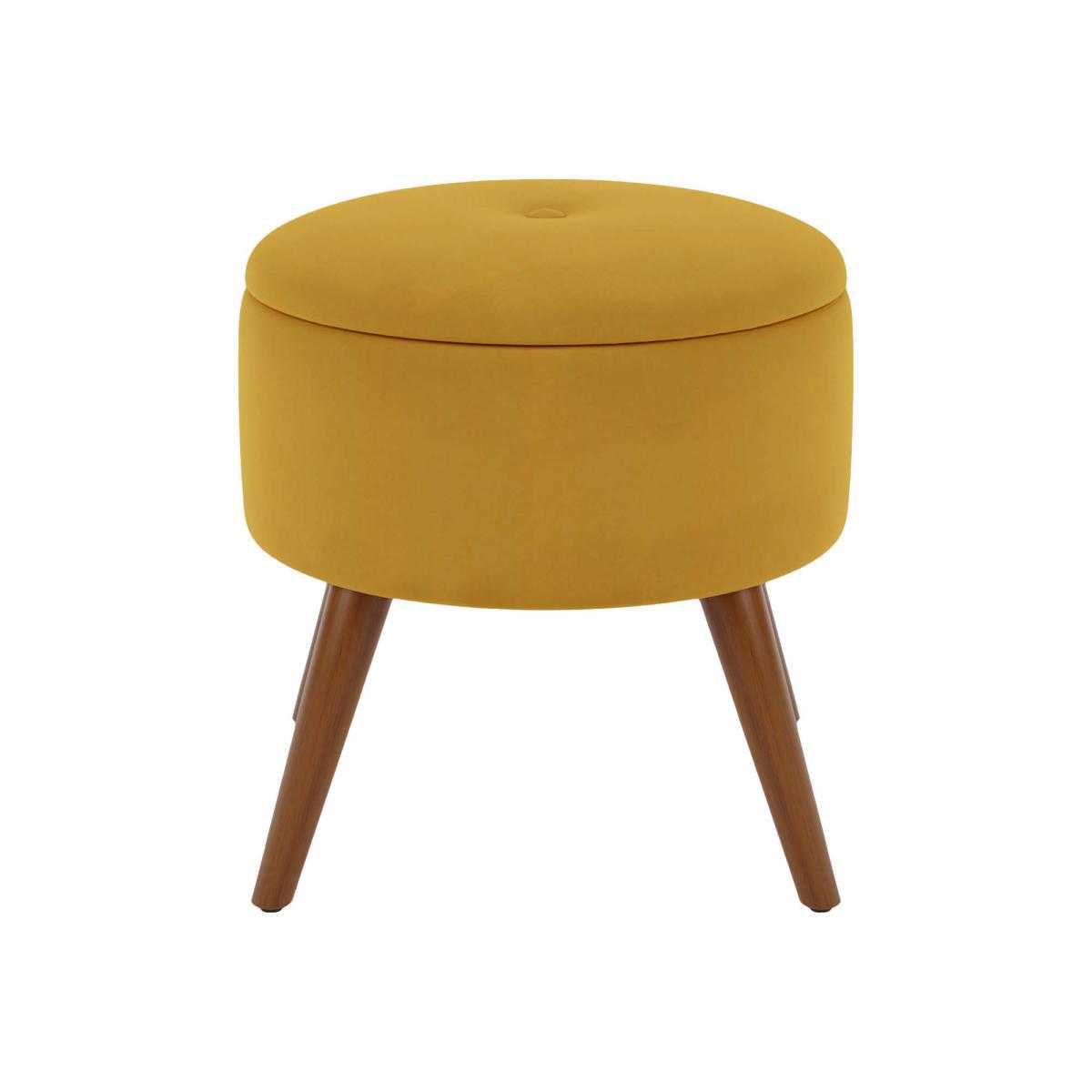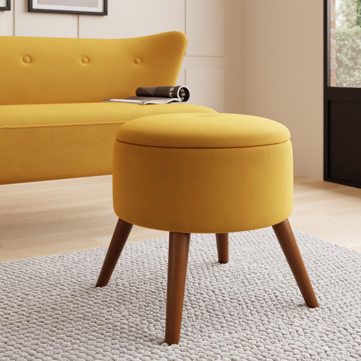 I love this footstool for adding a touch of vintage charm to a variety of interiors. Its old gold velvet finish works particularly well in warm, cosy schemes, or to introduce a pop of colour into neutral or monochrome spaces. It's versatile enough to sit in living rooms, bedrooms, or even dressing areas, providing both extra seating and handy storage if it has a compartment inside. For styling, consider pairing it with other mid-century inspired pieces, or use it as an accent piece to soften more modern or minimalist settings. A practical tip is to place it opposite a sofa or armchair, making it perfect as a footrest or an impromptu perch when entertaining.