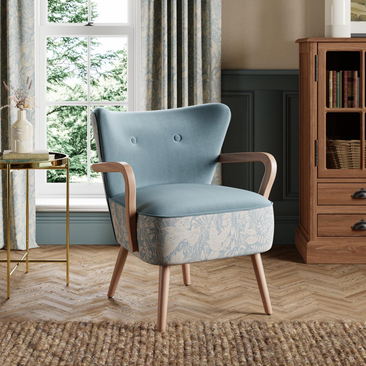 **In collaboration with the Natural History Museum** * Wooden frame * Soft upholstery * Elegant print With its sleek wooden arms and vibrant starling blue upholstery, this chair is perfect for a variety of spaces. Whether it’s in the living room, study, or even commercial environments, its timeless design ensures it complements a range of styles, from classic to contemporary. It’s not just about looks, though; the Eliza chair also offers comfortable seating that suits both home and professional settings.**Natural History Museum x Dunelm**From our familiar garden friends to more exotic species from tropical lands, birds are all around us. They live on every continent, in every type of habitat and can be as different as the hummingbird and the penguin. This collection pays homage to some of the wonderful birds that reside in the UK, some well-known species that we might overlook in our daily lives, and yet they are incredible in their own right. From the house sparrow and grey partridge to the fieldfare and turtle dove, many of these species are under threat or in decline so it is crucial that we act to protect their habitats.