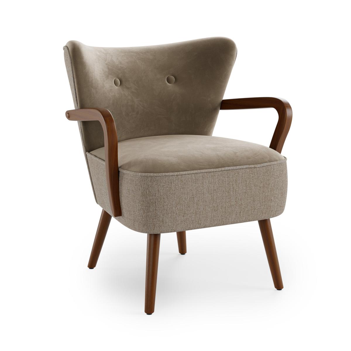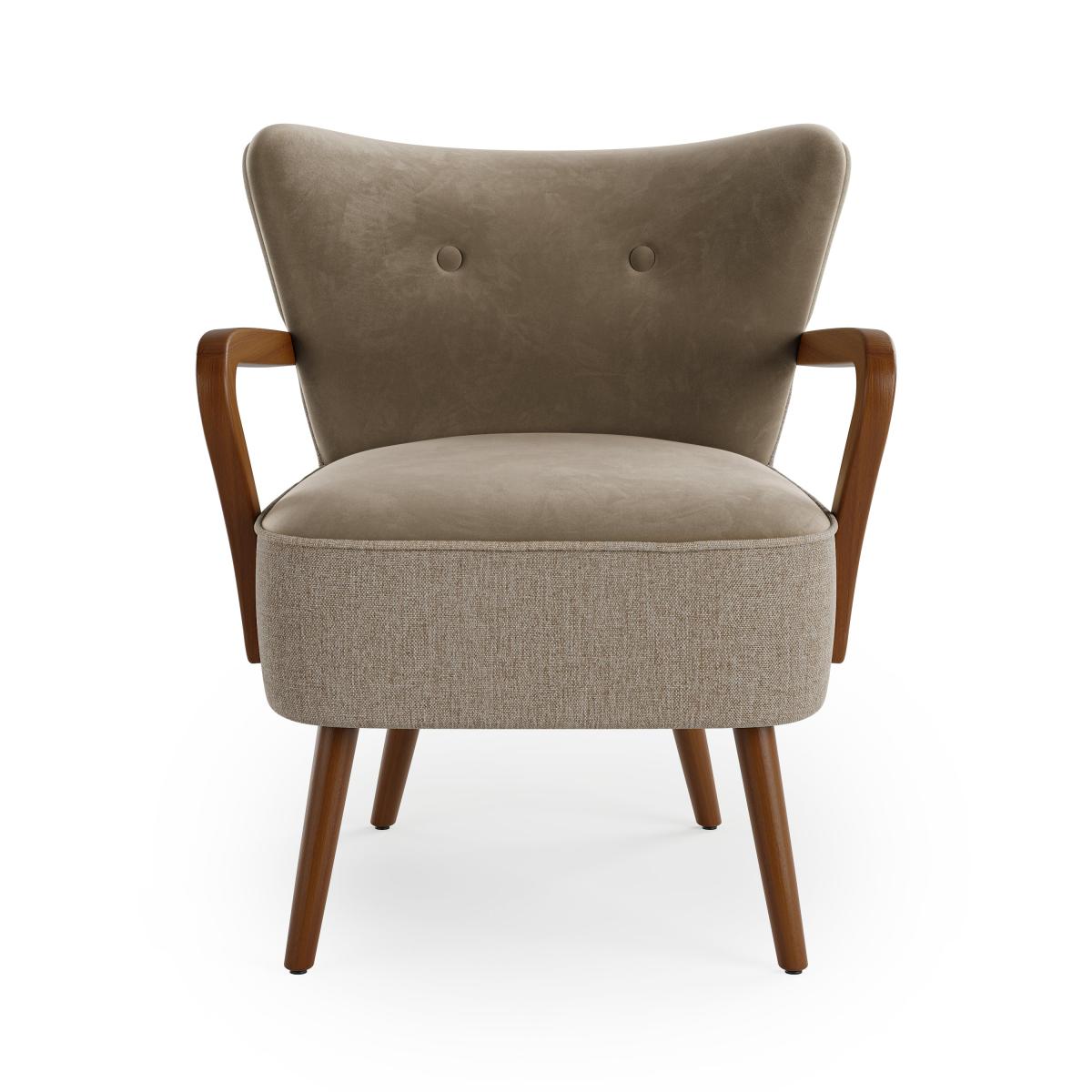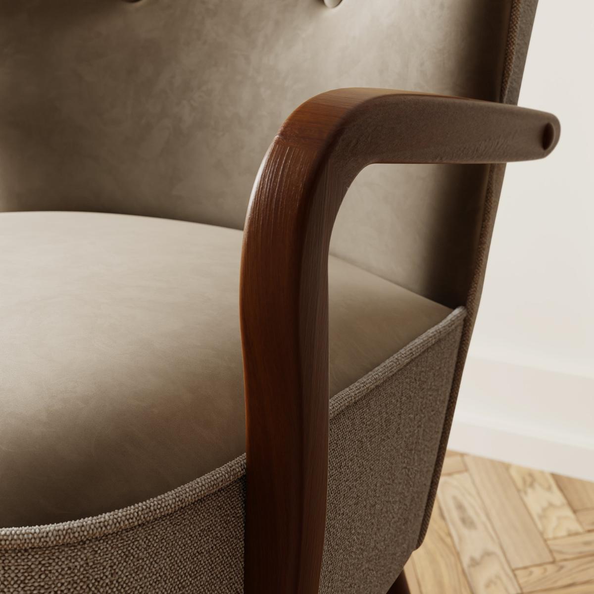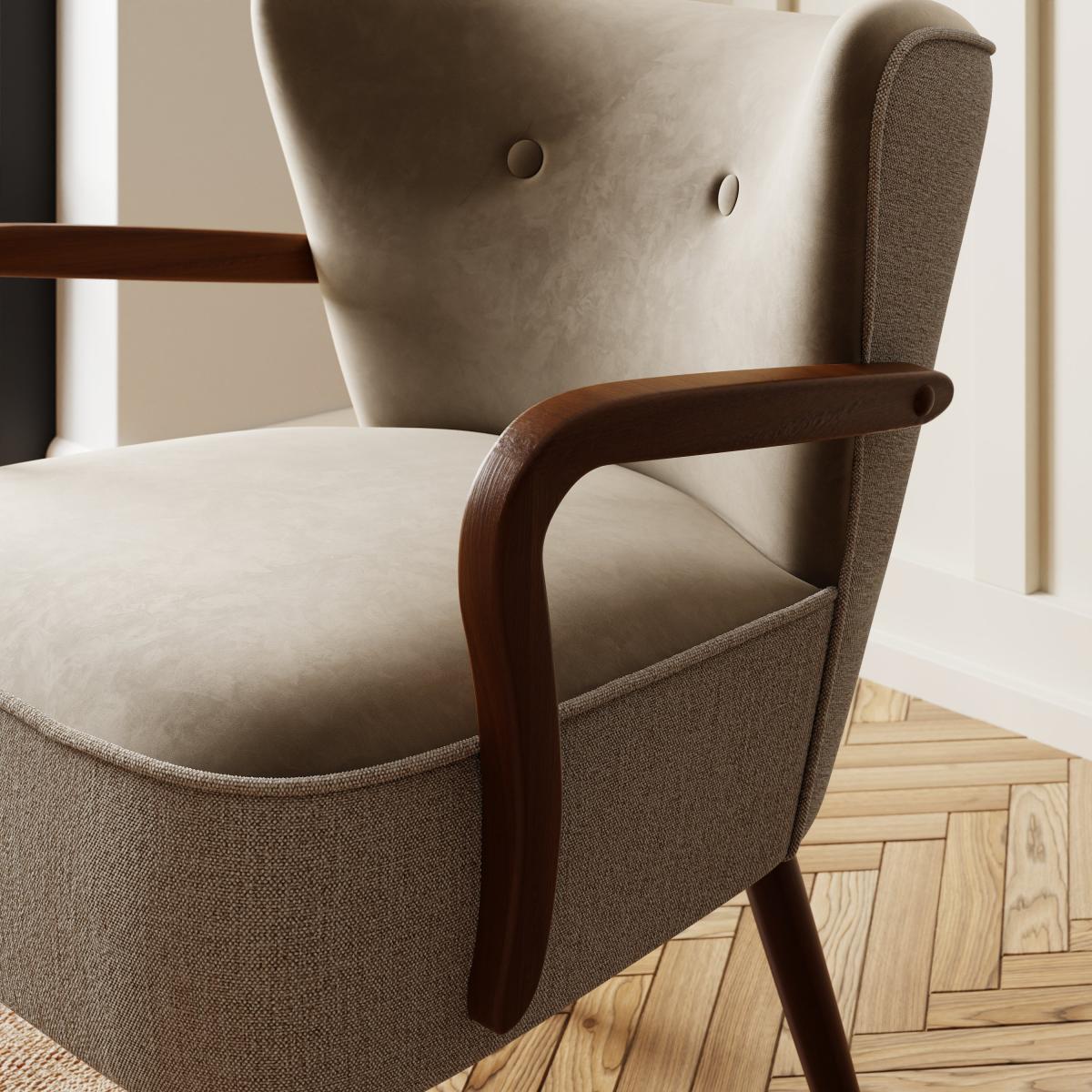 Eliza Wooden Velvet Armchair, Flatweave Mole Mole (Brown)