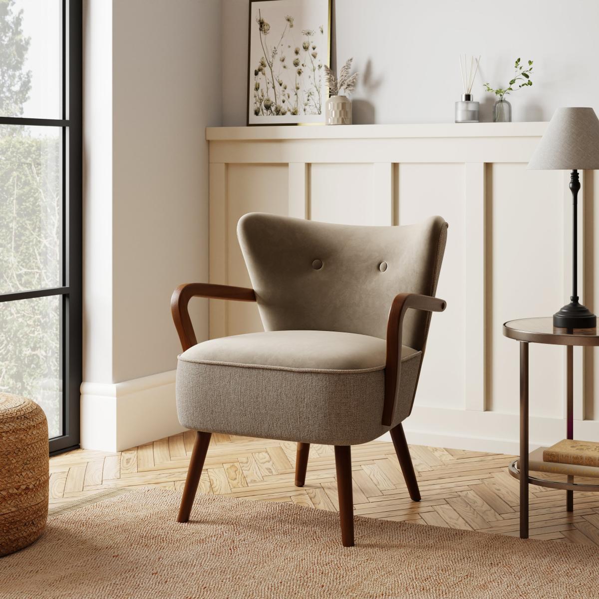 The Eliza armchair is a fantastic choice for adding a sense of understated elegance to a variety of interiors. I love its versatile design - the combination of a soft velvet finish and classic wooden details means it works well in both vintage-inspired and contemporary settings. It’s perfect for creating cozy reading nooks or seating arrangements in living rooms where a relaxed, inviting vibe is desired. Practical styling tips include pairing it with textured cushions for added comfort or placing it alongside a small side table for functionality. Its neutral brown tone makes it easy to incorporate into a colour palette, while the simple silhouette keeps the space uncluttered and stylish.