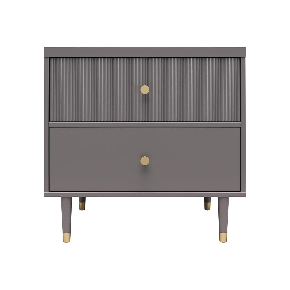 The contemporary chic design of the Elizabeth Nightstand melds perfectly with midcentury modern contours to create an instant focal point in any room. Fabulously designed with 1 ribbed, textured drawer front, and 1 smooth, both adorned with glam gold drawer pulls. The 2 sizable drawers are exactly what you need to discretely tuck away all your bedside essentials... Wink wink. Constructed from durable painted MDF and available in several gorgeous finishes, the Elizabeth Nightstand beautifully sits atop tapered solid wood legs, nestled in vintage gold-capped feet, creating a sophisticated and polished look, fit for a modern-day queen like yourself.