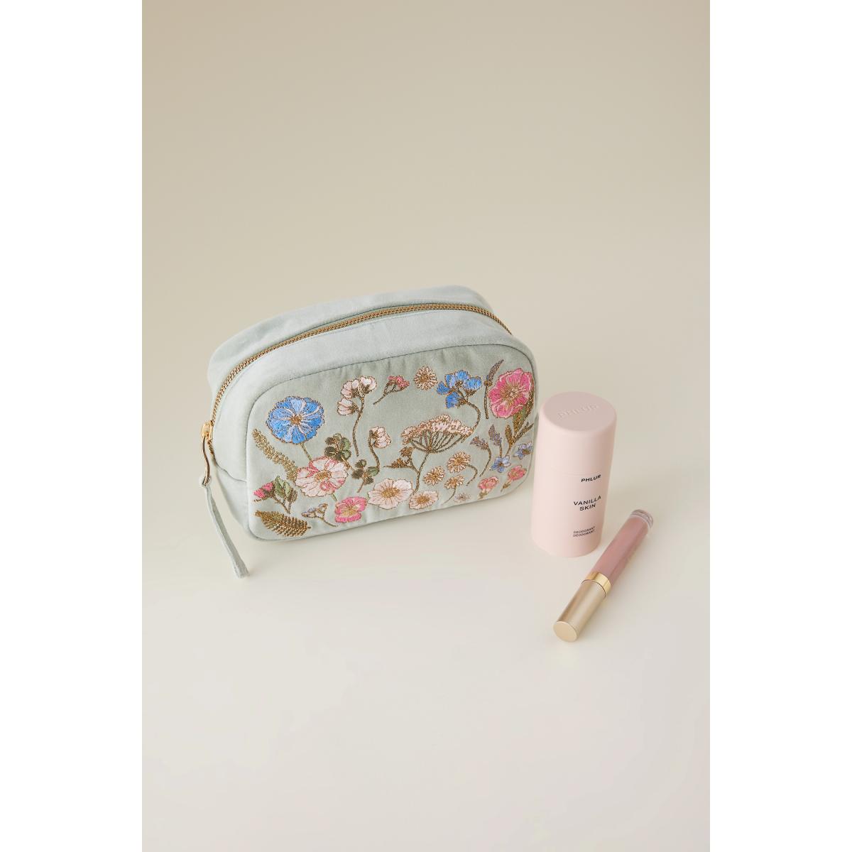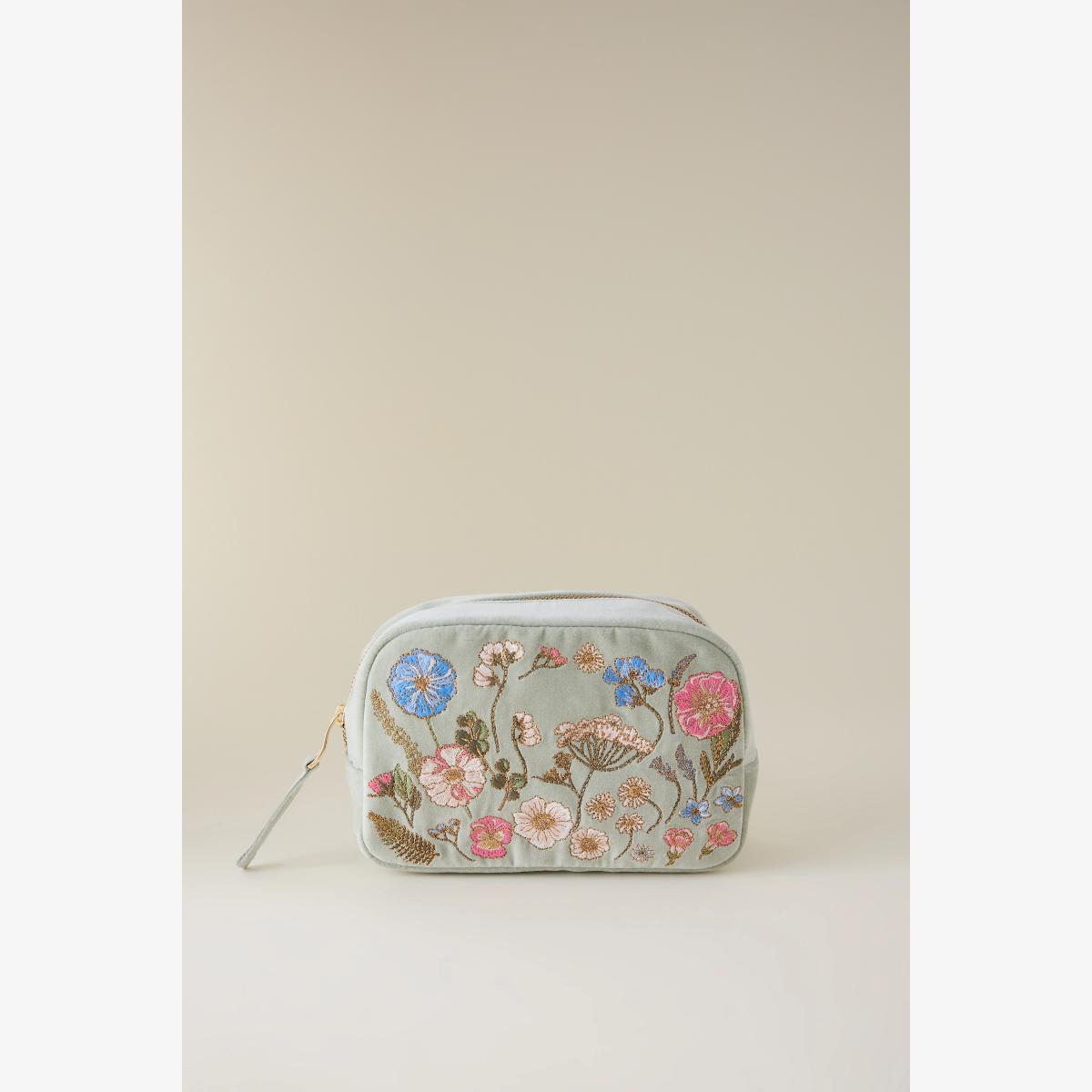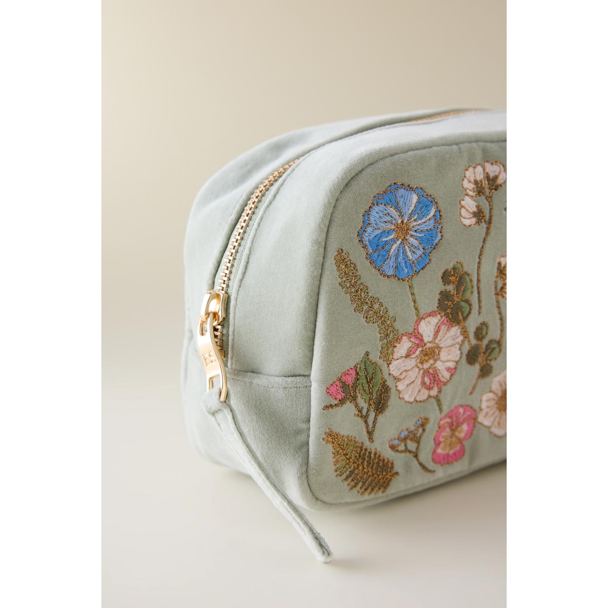 Elizabeth Scarlett Pressed Flowers Embroidered Velvet Makeup Bag