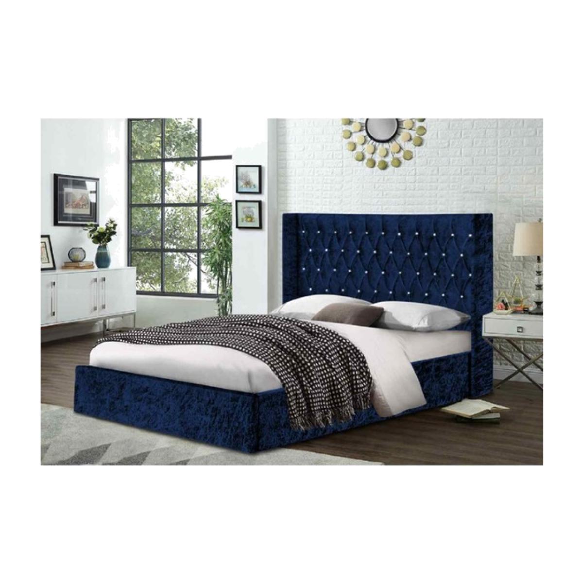 Elizabeth Upholstered Crush Velvet Bed Frame - Blue / King Size / King