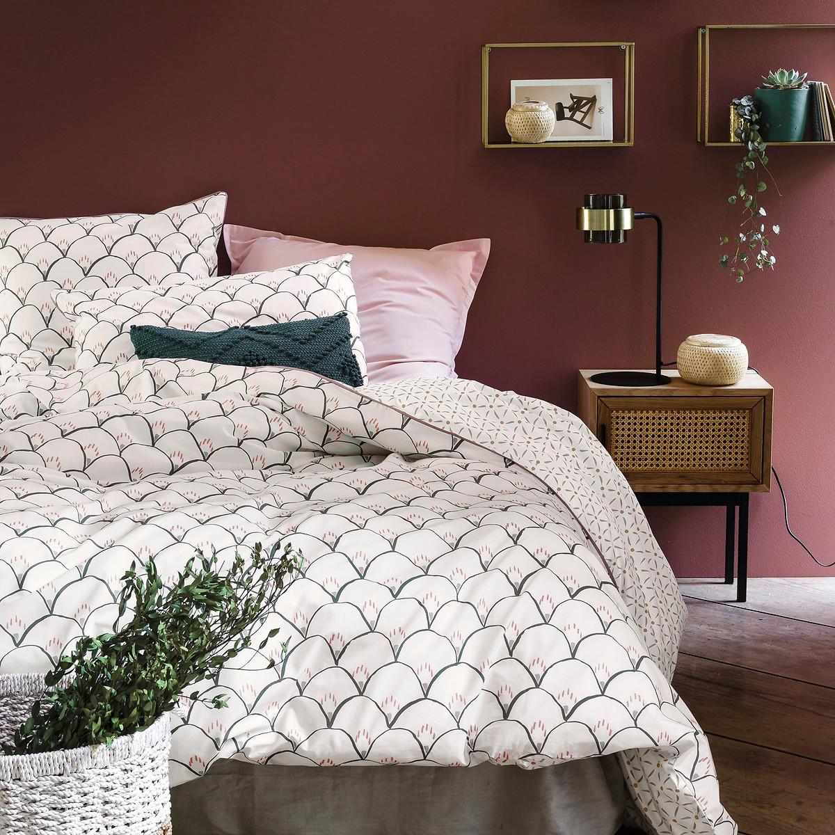 The Elka cotton percale duvet cover. Scale-inspired patterns adorn the Elka cotton percale set in soft and harmonious tones.