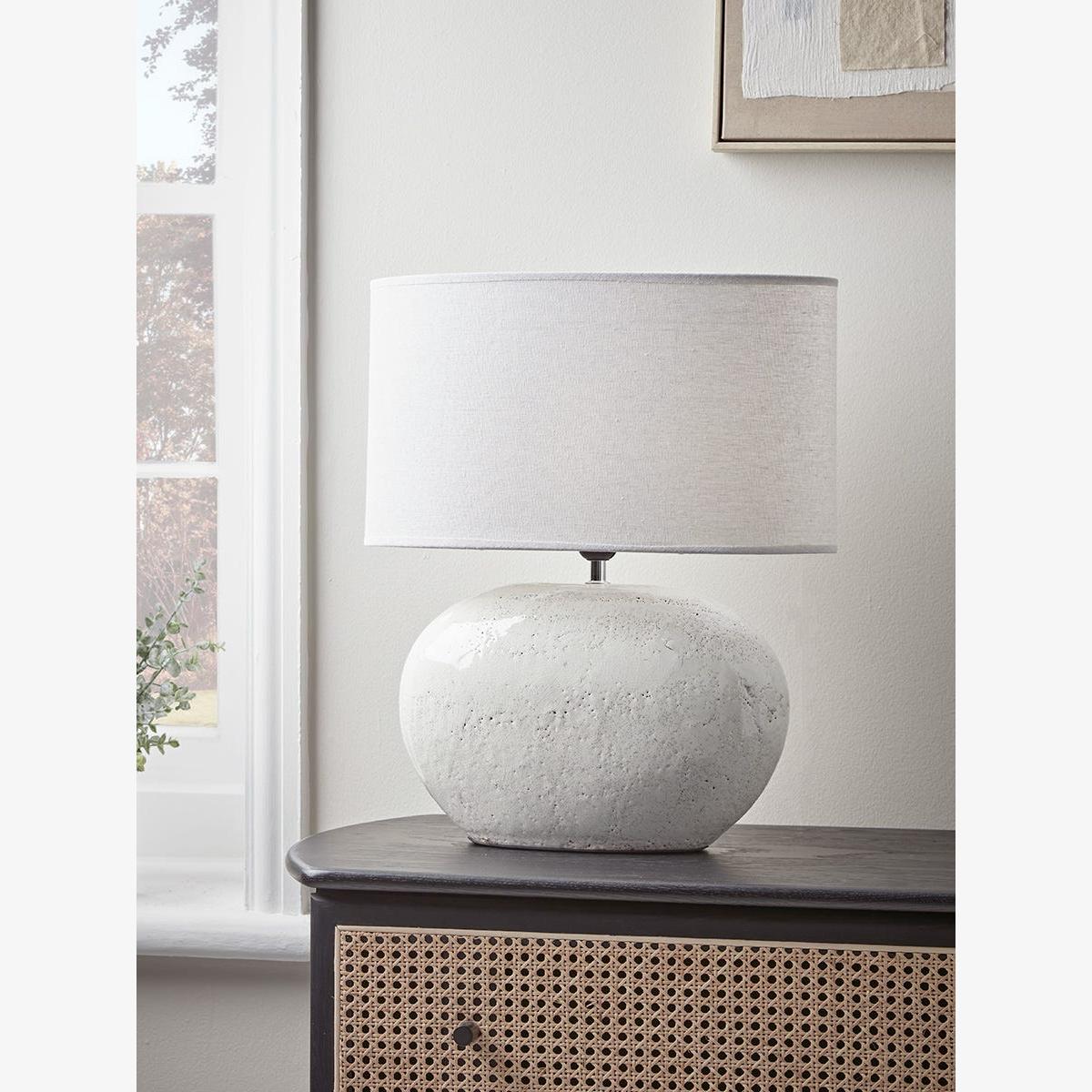 With a base shaped like an oversized oval pebble, complete with pitting and veining within the glazed white finish, this table lamp is a lovely neutral toned piece that will elevate any scheme. A white fabric shade in a lozenge shape that mirrors the form of the base completes the lamp. Discover how to create the perfect lighting scheme for your home using our Lighting Buying Guide.