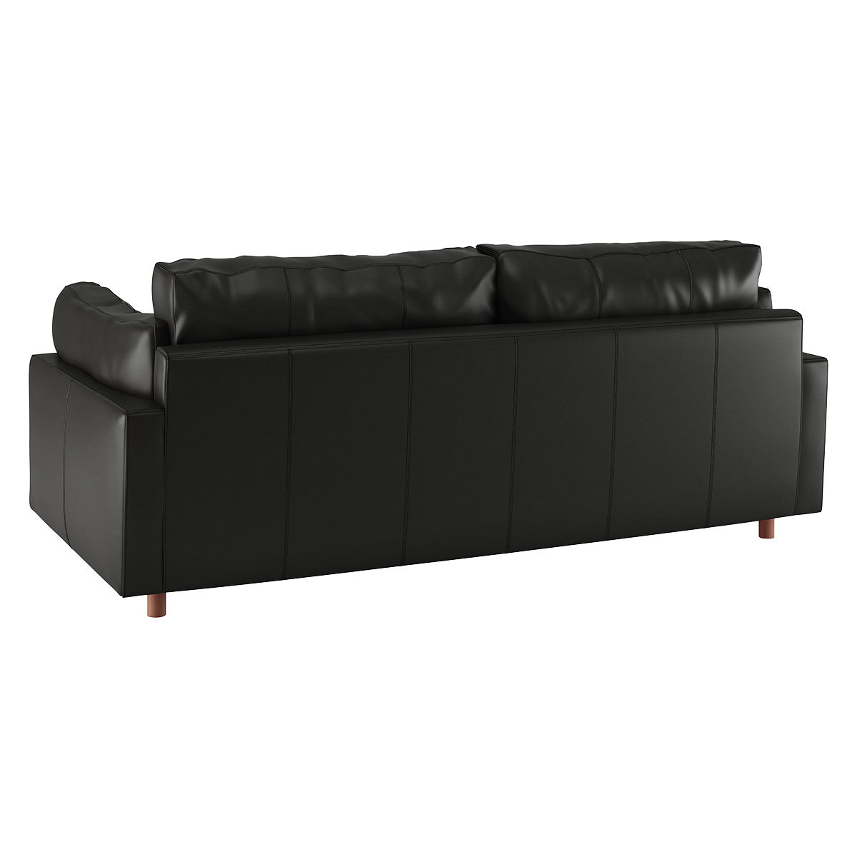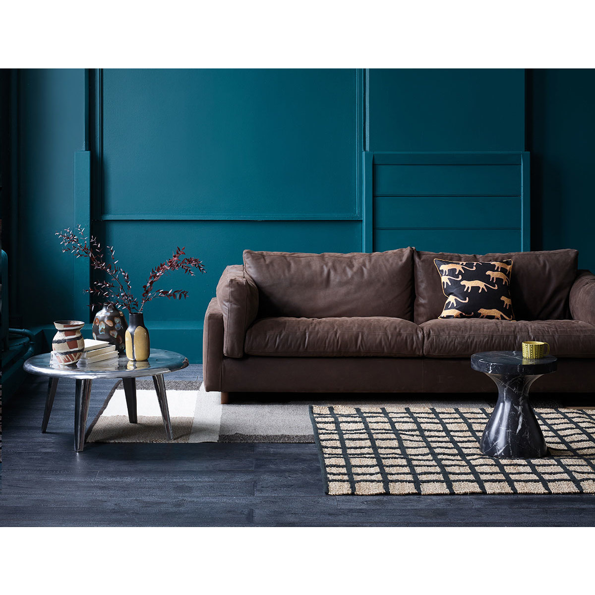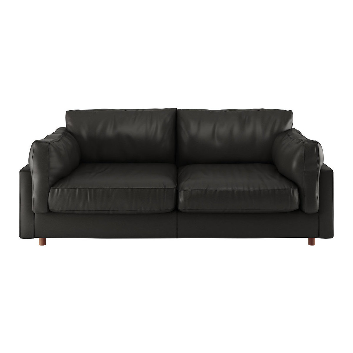 Made in Italy, the Elkin black leather sofa offers the ultimate in high-end design with soft, feather-filled cushions that cocoon you as you unwind. The luxurious sofa combines a streamlined, contemporary box-shaped frame with sumptuous feather and foam seat cushions, and feather-filled back and side cushions, giving it an informal, slouchy look. The Elkin sofa acquires a relaxed, lived-in feel over time, but its cushions benefit from a good plumping once or twice a week to restore their shape and get the air circulating. The sofa is exclusive to Habitat and available in a choice of fabrics and leathers in a variety of colours and sizes.