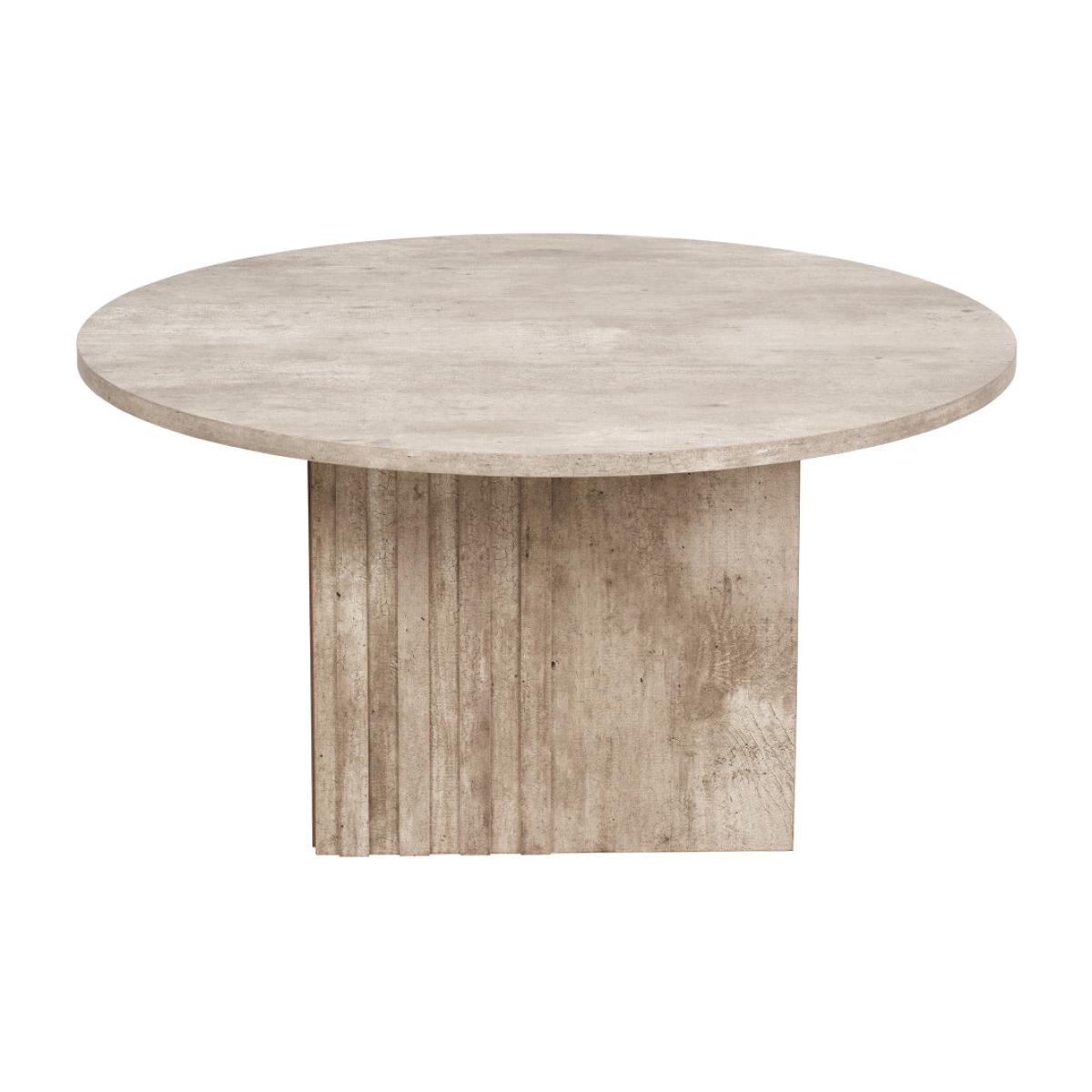 Introducing our , featuring a smooth concrete effect surface and stylish groove detailing on the base. This statement wooden coffee table seamlessly fits into any interior, from Scandi to Industrial. Perfectly designed for housing a stunning home accent, coffee table books, or simply a cup of tea, this piece will elevate your interior space.