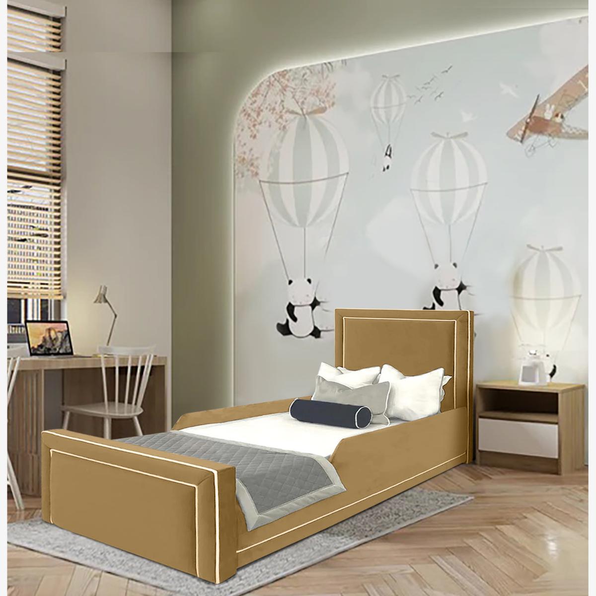 Ella Kids Bed Plush Velvet with Safety Siderails - Beige / Double