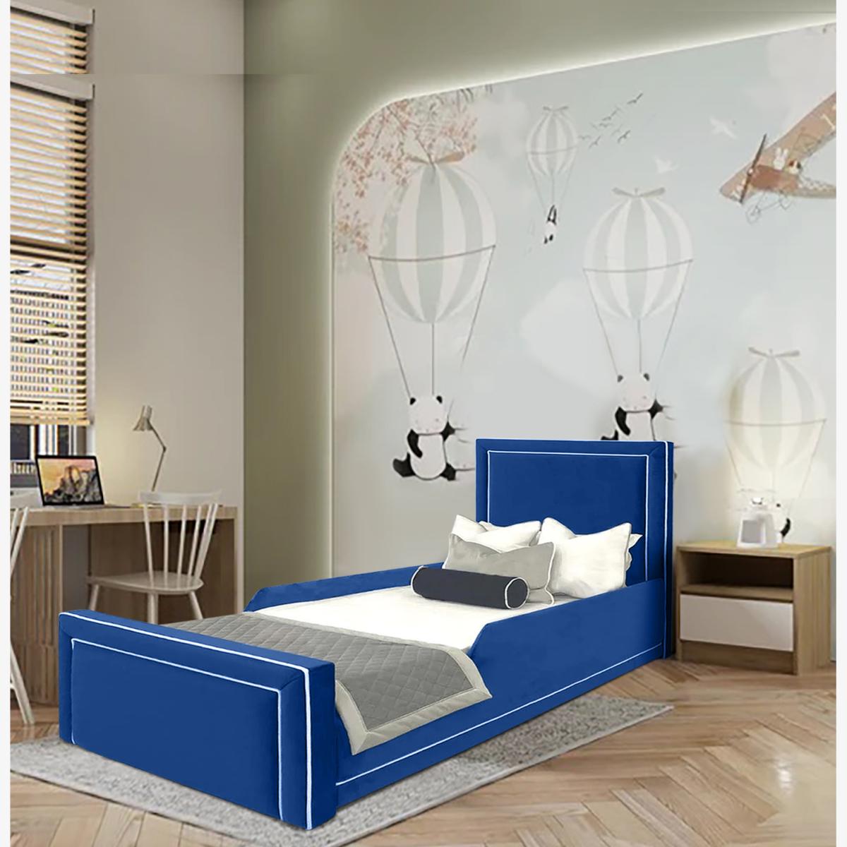 Ella Kids Bed Plush Velvet with Safety Siderails - Blue / Small Double