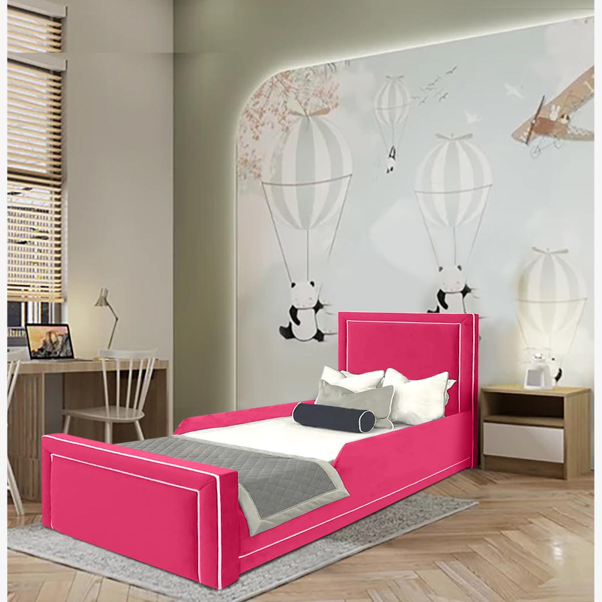 Ella Kids Bed Plush Velvet with Safety Siderails - Pink / Double