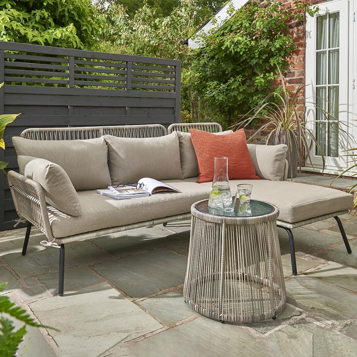I love the Elland chaise sofa for its clean, contemporary look that works beautifully in outdoor settings, particularly patios and garden terraces. Its neutral tone is versatile, allowing it to blend seamlessly with various colour schemes, from lush greenery to vibrant decorative cushions. For styling tips, consider adding a mix of textured cushions and throws to make it feel cosy and inviting, especially in cooler months. Pair it with minimalist or coastal-inspired accessories-think rattan side tables or lanterns-to enhance its relaxed vibe. This piece is ideal for casual gatherings or lazy weekend lounging, giving your outdoor space a sophisticated yet laid-back feel.