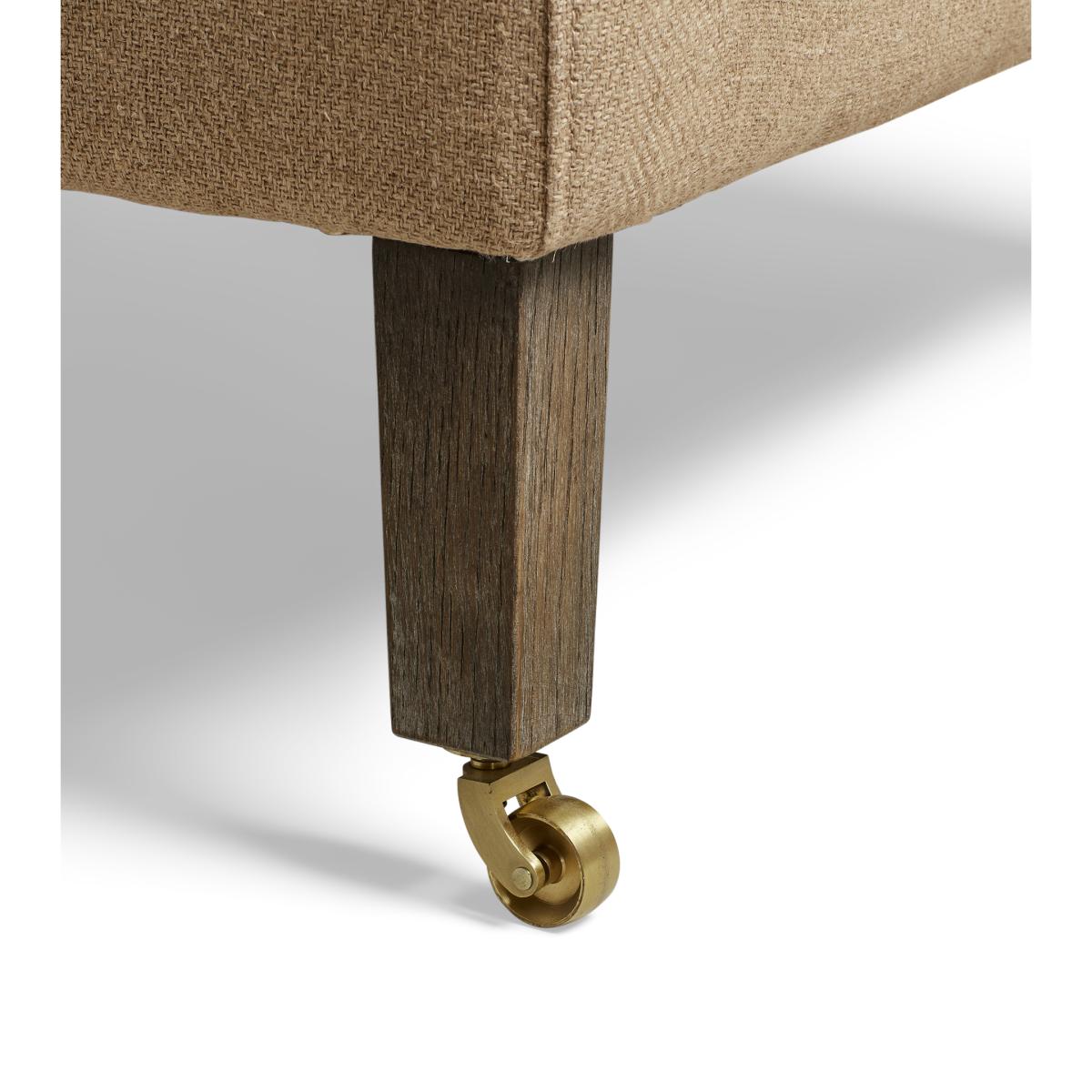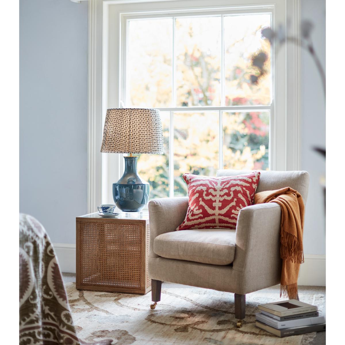 Classic lines, a sturdy construction and an invitingly plump seat: the Ellary Armchair has it all. Sitting low to the ground, this living room essential cuts a commanding figure, with its square back and arms. Brass castors on the front legs make it easy to move, so you can find your perfect spot before sinking into it to lose yourself in your latest captivating read.