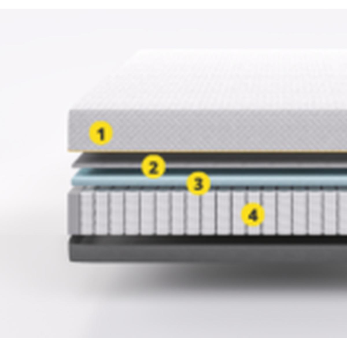 Layer 1 - The Citrine Mattress features a washable cover made from Tencel fabric, making the mattress extremely soft to the touch, durable and easy to clean. The breathable and moisture-resistant Tencel fabric aids temperature regulation, keeping you comfortably cool whilst you sleep and guaranteeing you will never wake up in a sweat. Layer 2 - Some may argue that a good nights sleep isnt exactly rocket science, but in this case it is Developed by astrophysicists, our Cellpur cooling memory foam layer moulds to your body, whilst also being breathable and dispersing your body heat, allowing you to wake up feeling rejuvenated and refreshed. Engineered to compress and expand around your body for optimum comfort. Layer 3 - The layer of support foam utilises advanced zoning technology in order to gently cradle your body whilst you sleep, supporting your shoulders and hips and ensuring spinal alignment. Layer 4 - A layer of 800 pocket springs adds bounce to the mattress and enables it to further mould to your body, increasing comfort, and allowing you to fall asleep faster and stay asleep for longer.