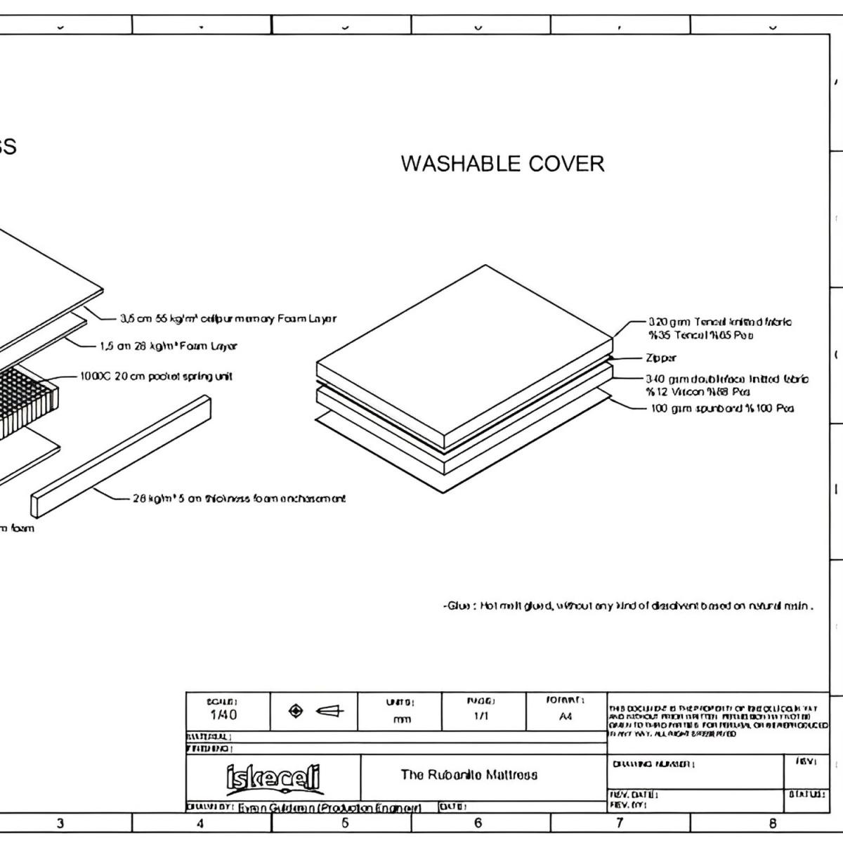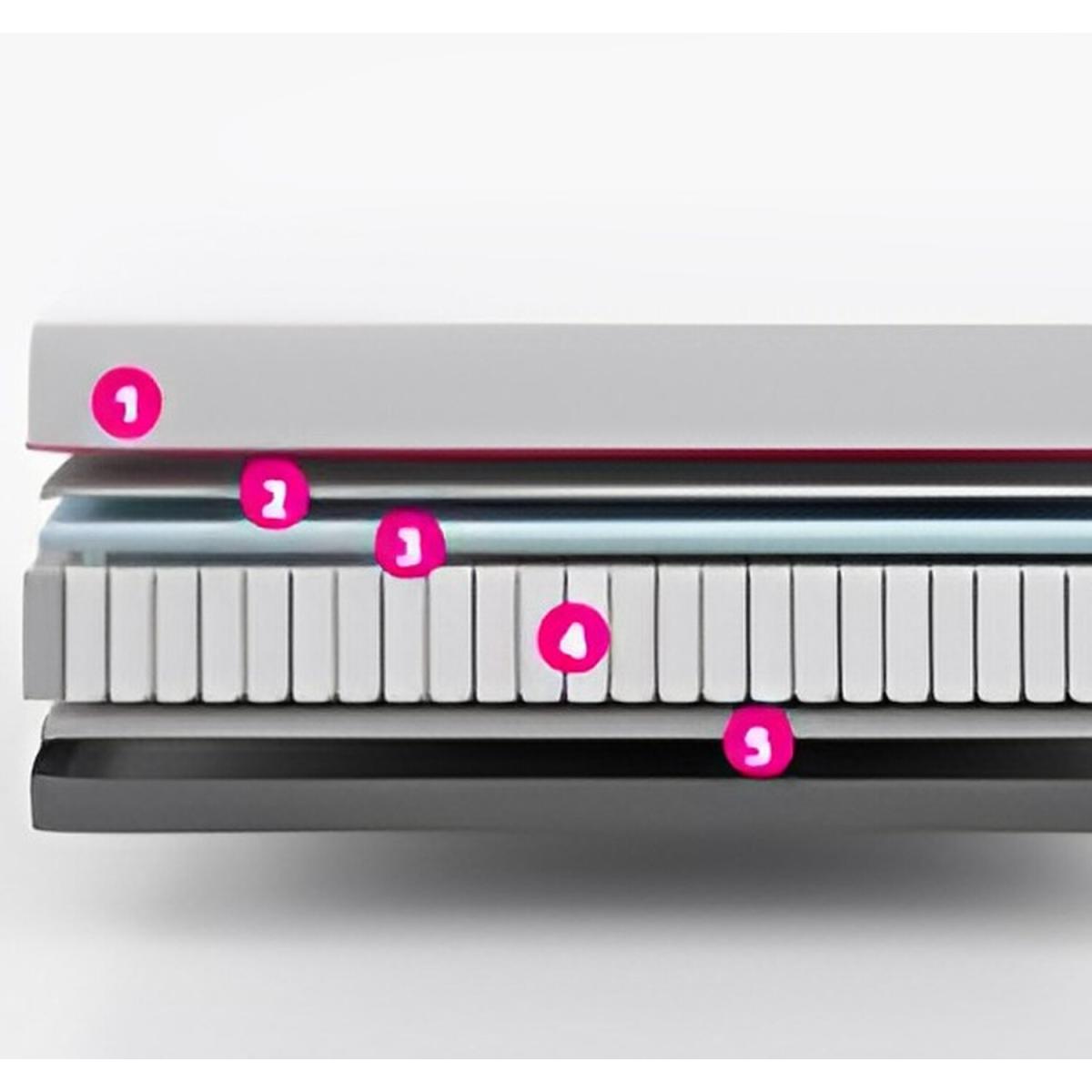 Layer 1 - The Rubenite Mattress features a washable cover made from Tencel fabric, making the mattress extremely soft to the touch, durable and easy to clean. The breathable and moisture resistant Tencel fabric aids temperature regulation, keeping you comfortably cool whilst you sleep and guaranteeing you will never wake up in a sweat. Layer 2 - Some may argue that a good nights sleep isnt exactly rocket science, but in this case it is! Developed by astrophysicists, our Cellpur cooling memory foam layer moulds to your body, distributes your weight and relieves pressure whilst also being breathable and dispersing your body heat, allowing you to wake up feeling rejuvenated and refreshed. The thick layer of memory foam is engineered to compress and expand around your body for optimum comfort. Layer 3 - The layer of support foam utilises advanced zoning technology in order to gently cradle your body whilst you sleep, supporting your shoulders and hips and ensuring spinal alignment. Layer 4 - A layer of 1000 pocket springs adds bounce to the mattress and enables it to further mould to your body, increasing comfort, and allowing you to fall asleep faster and stay asleep for longer. Layer 5 - Another layer of support foam to give the mattress structure and further adding to the relaxing cushioning effect.