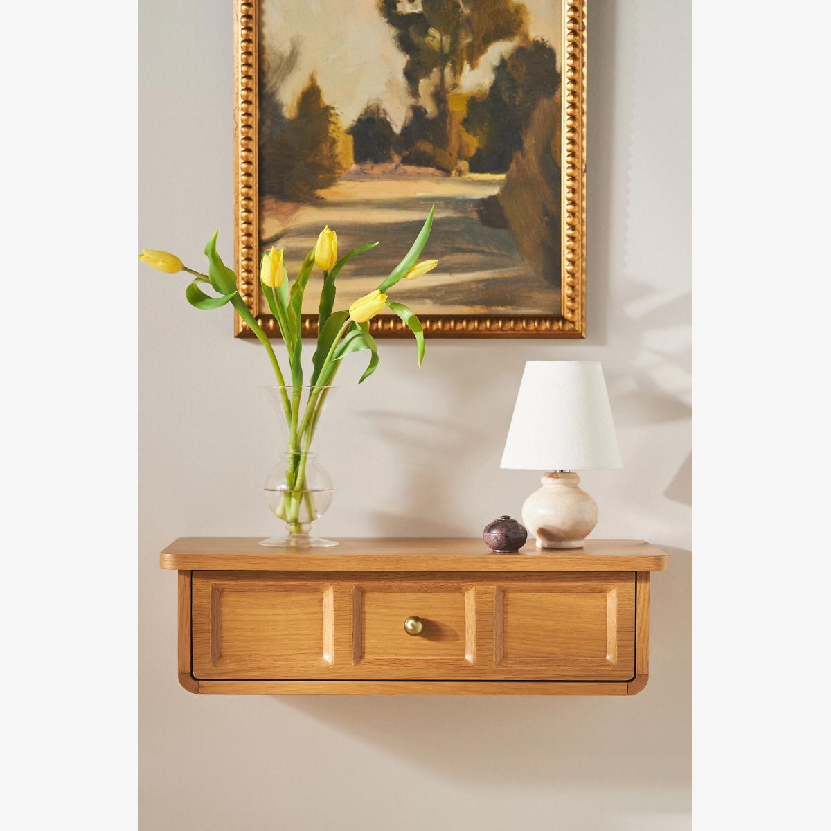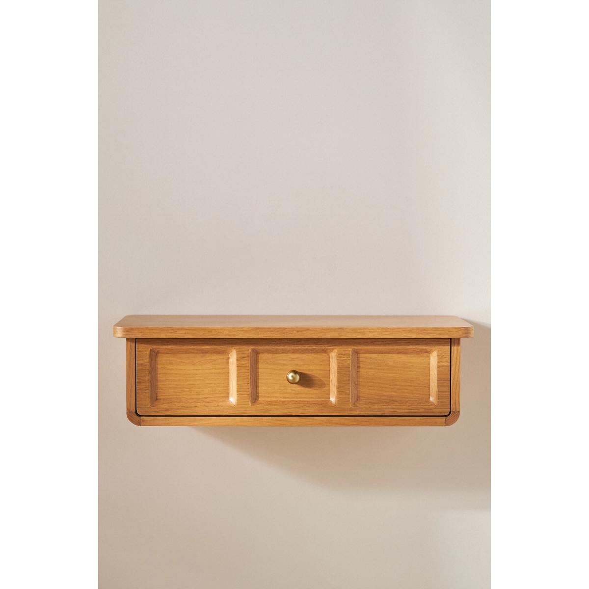 A versatile storage and décor solution for any room, the Elle Shelf charms with oak wood, brass hardware, and a convenient drawer. * Solid oak shelf reinforced with engineered hardwood and an oak veneer finish * Brass hardware * Because this item is crafted by hand, no two pieces are exactly alike. Please expect unique variations in colour, natural texture, and pattern (including woodgrain) from the imagery shown * Some assembly required; hardware included * Wipe clean * Imported
