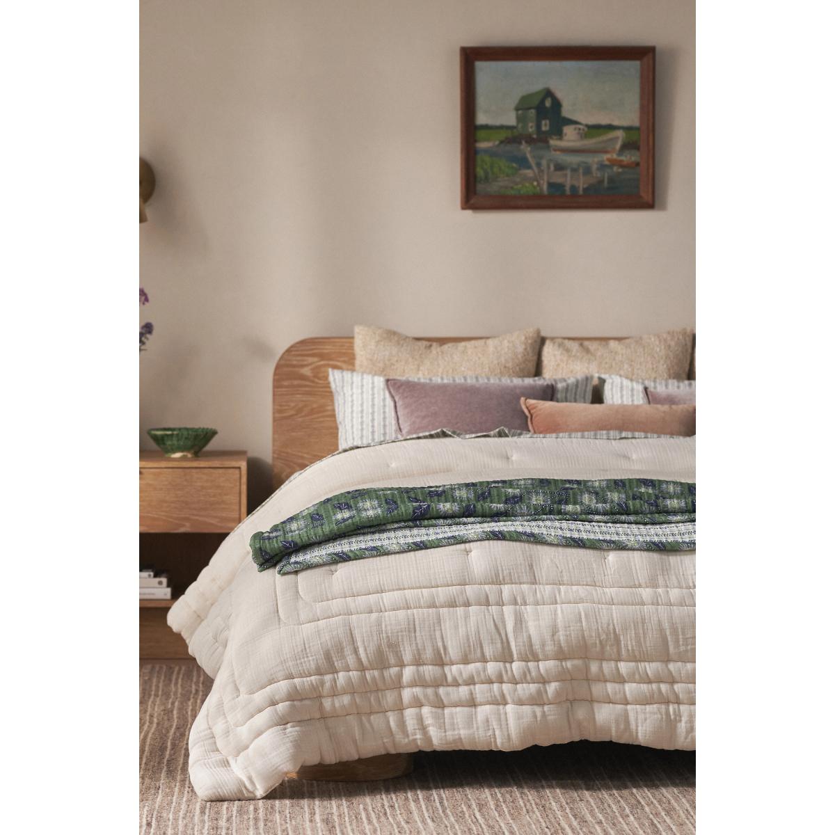 An open window, a fresh breeze, a good book, and an Ellen Merchant Throw is a cottage core lover's paradise. Bespoke patterns, traditional craft skills, and playfully vibrant designs are a few of the many qualities that make Ellen Merchant's art aesthetic, eye-catching, and evocative of the British Arts & Crafts movement. Cottage Throw Blanket by Ellen Merchant in Green at Anthropologie