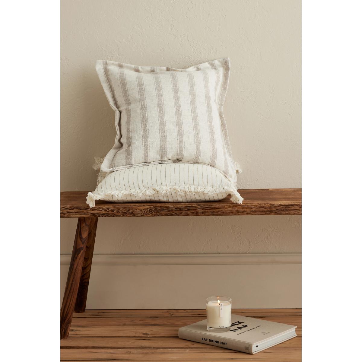 By Ellenvale Interiors 100% Polyester; duck feather fill Machine wash Imported Ella Grey Stripe Cushion by Ellenvale Interiors at Anthropologie