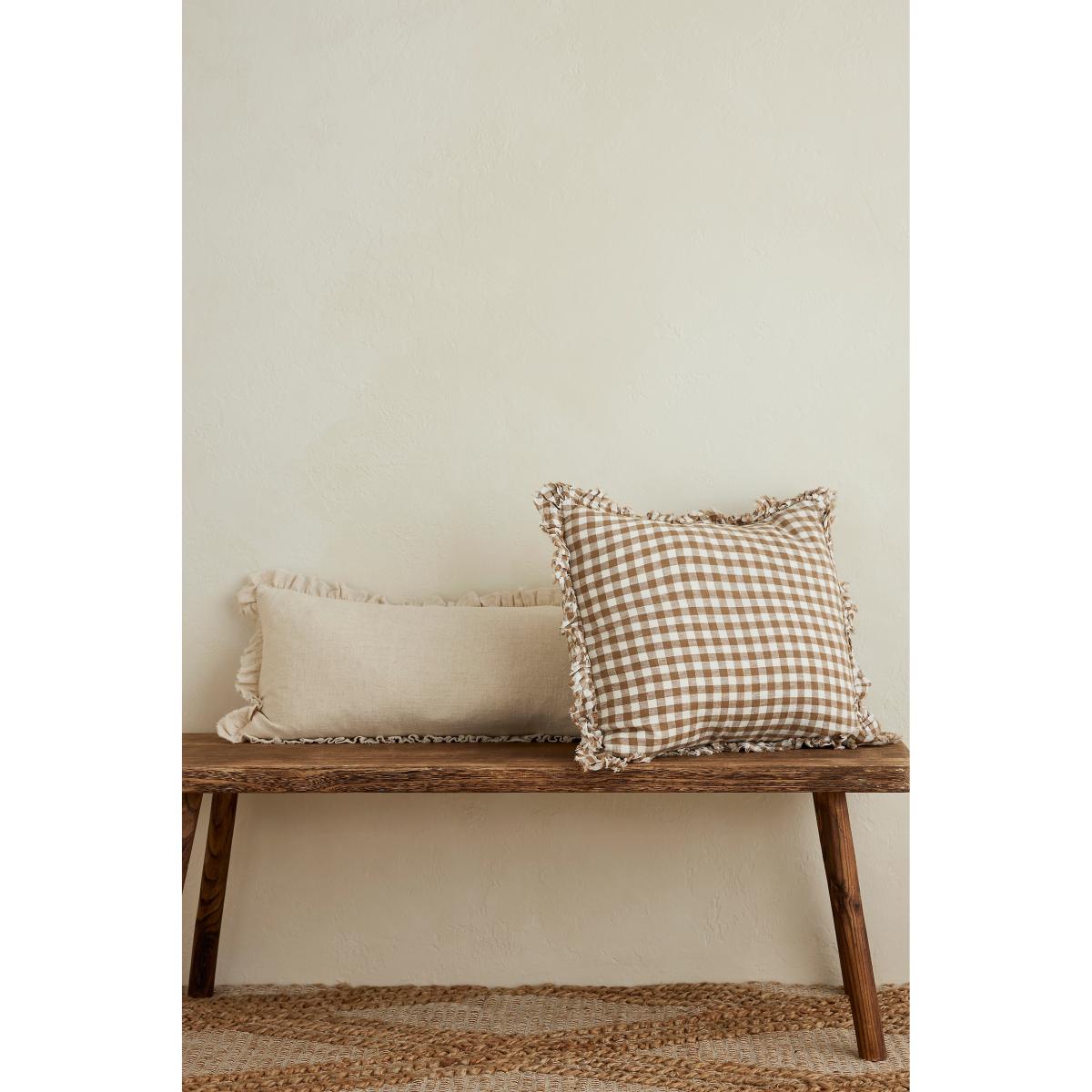 Spun from a soft linen blend and finished with a ruffled edge, this elegant cushion is perfect for book nooks, or nestled on your bed or sofa as a centrepiece. * By Ellenvale Interiors * Polyester, Linen; Duck Feather pad * Machine wash * Imported