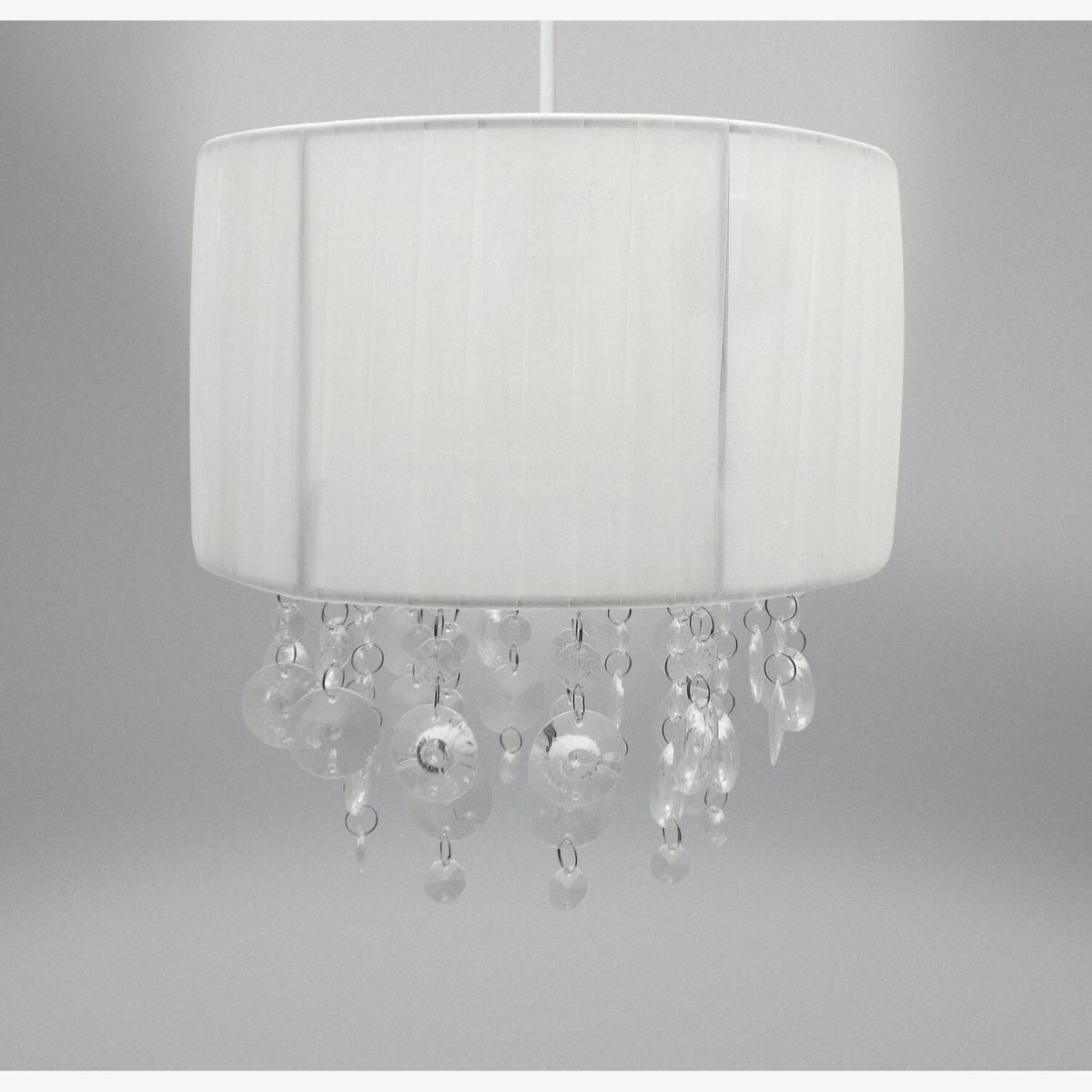 I love this lamp shade for its clean, understated design paired with a touch of elegance thanks to the dangling crystal-like embellishments. It's versatile enough to suit a variety of interiors, from modern minimalist spaces to more classic or glamourous schemes. When styling, consider pairing it with a simple pendant or table lamp base to keep the focus on the shade’s refined details. Practical tips include hanging it at a height that offers good ambient light without overwhelming the space, and opting for warm or neutral bulbs to enhance its subtle texture and sparkle. This piece works particularly well in living rooms, bedrooms, or hallways where effortless sophistication is desired.