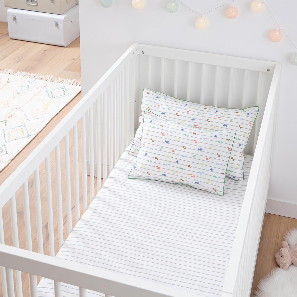 It's in small streams that we find all these playful and colourful little fish, in all shapes and colours... The striped Elliot fitted sheet is by La Redoute Intérieurs. A material as beautiful as it is resistant, cotton percale offers a fresh and light feeling. Its tight weave makes it particularly soft, for 5-star comfort. Product Details • 100% cotton • 200 thread count: The higher the thread count, the higher the quality of the weave • Cotton percale • Striped print • For mattress height 17cm • 4 elasticated corners. As the seasons change, add your own personal touch by mixing the Elliot range with our range of Scenario plains. Care Advice • Machine washable at 60°C • By washing your laundry at 40°C instead of 60°C, you limit energy consumption. Dimensions • 60 x 120cm: Cot bed • 70 x 140cm: Adjustable bed • OEKO-TEX® Standard 100. Standard 100 certification by OEKO-TEX® tests textile products for harmful substances via an independent, international label.
