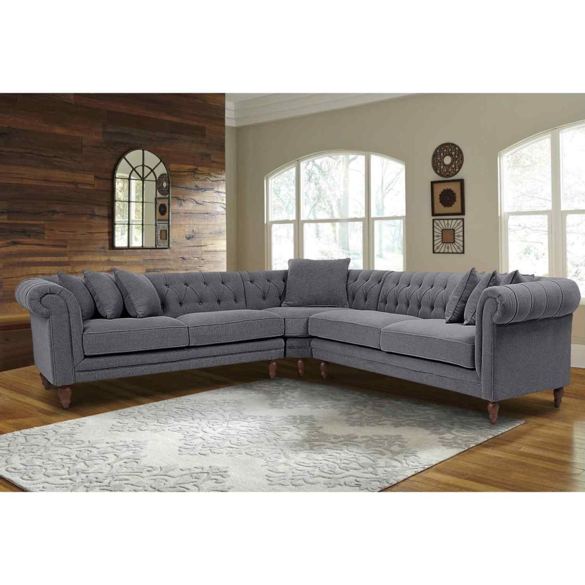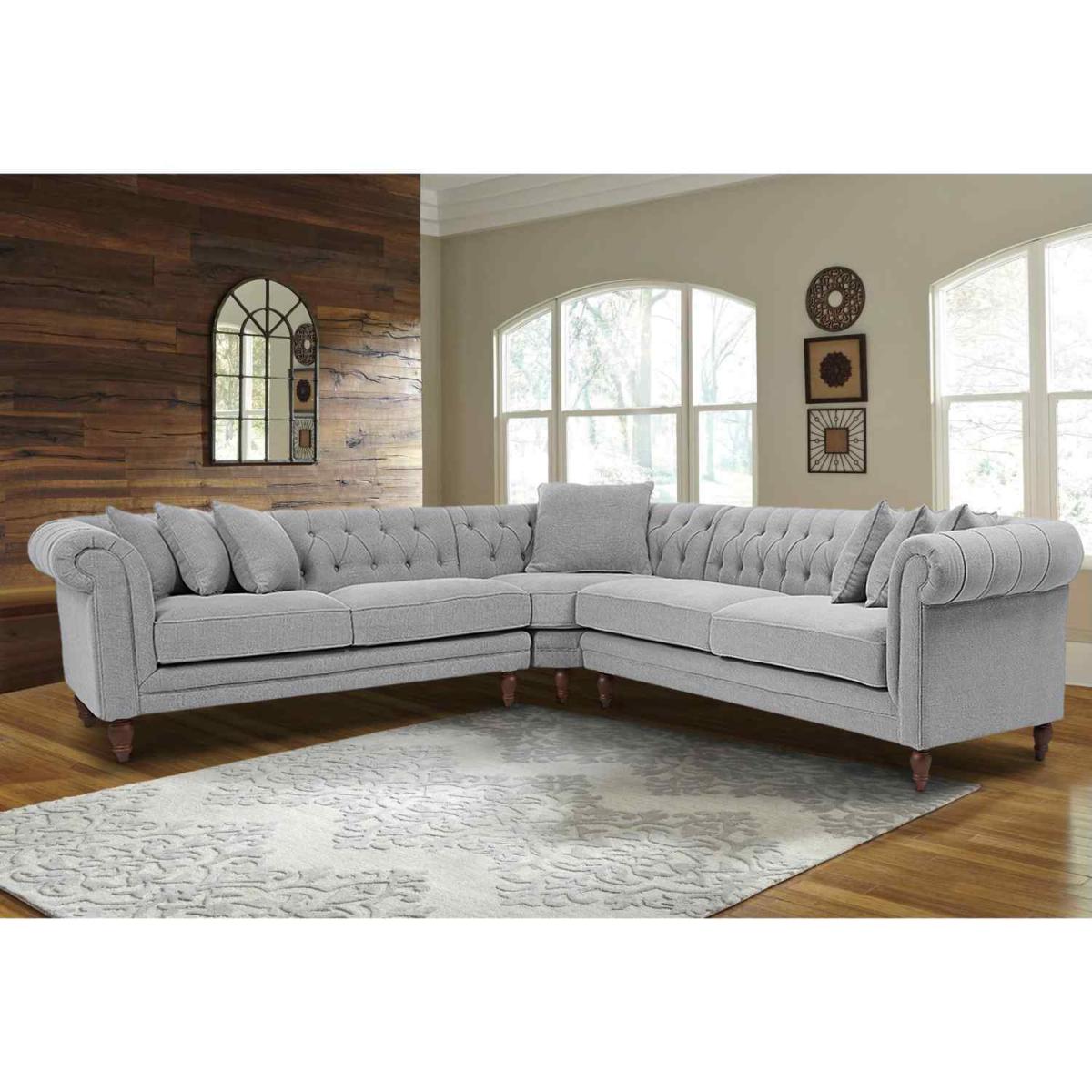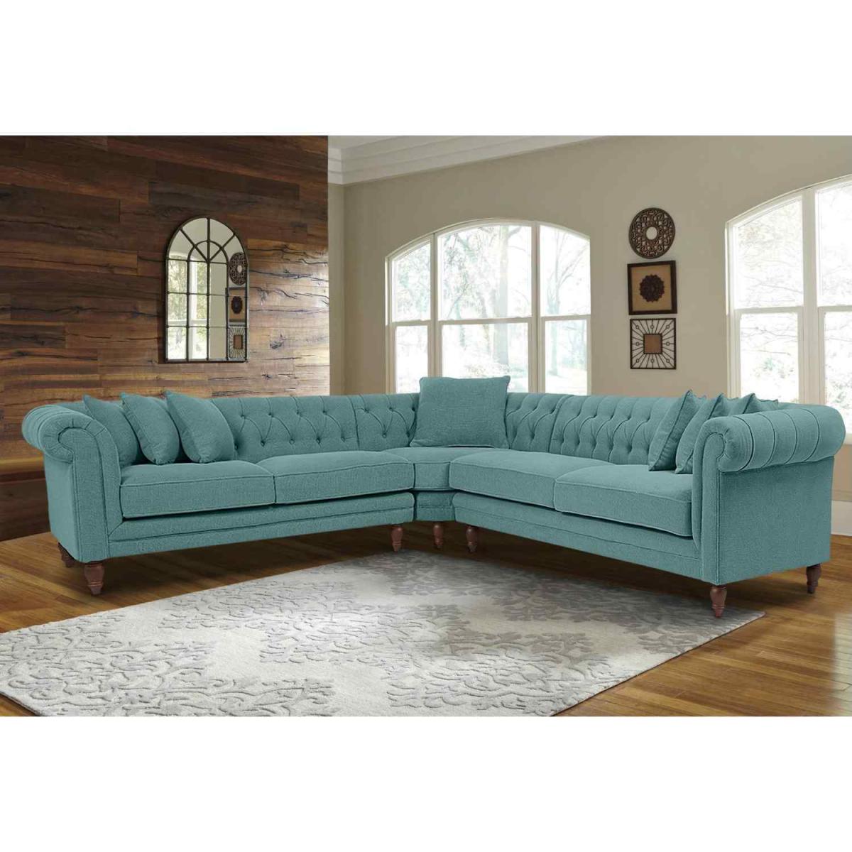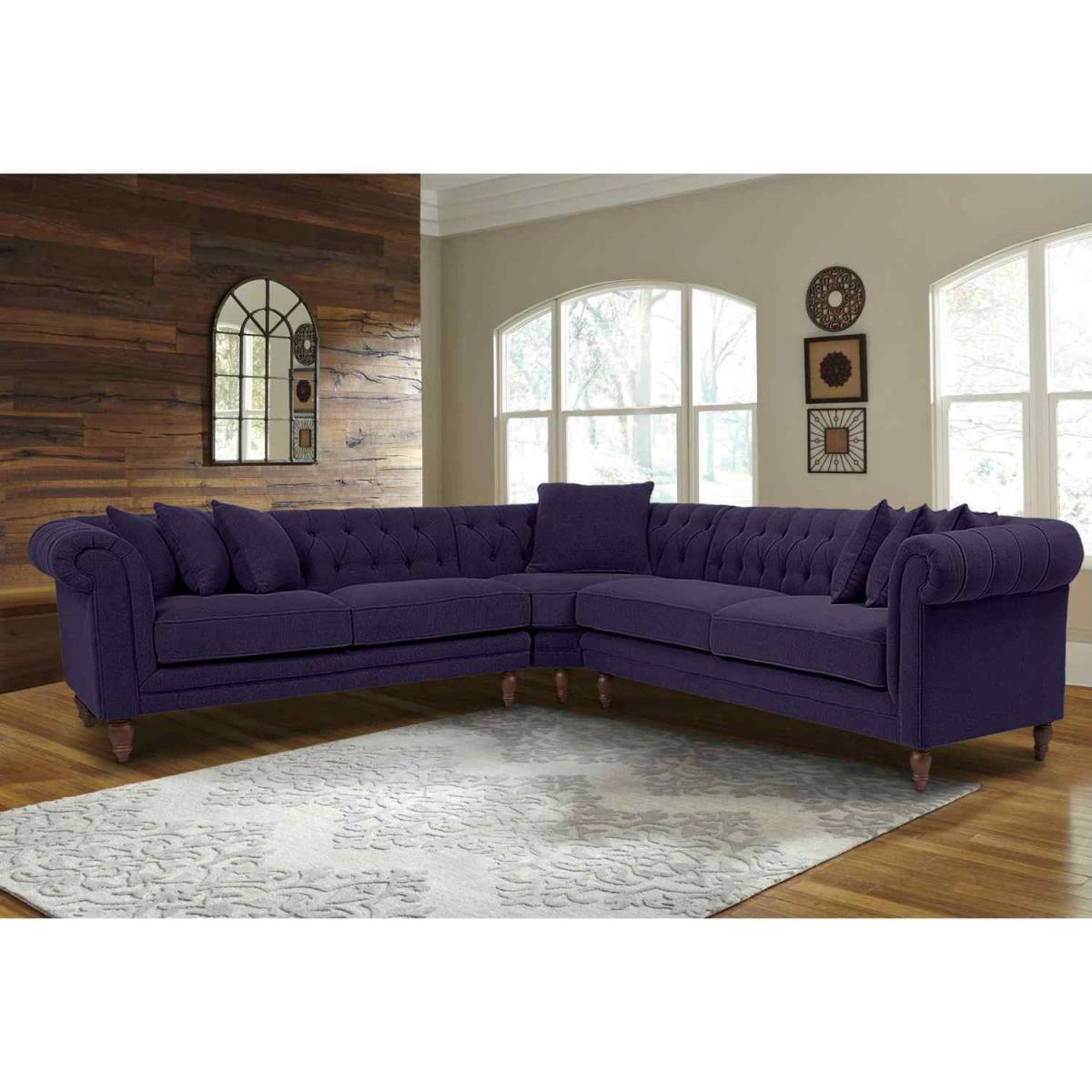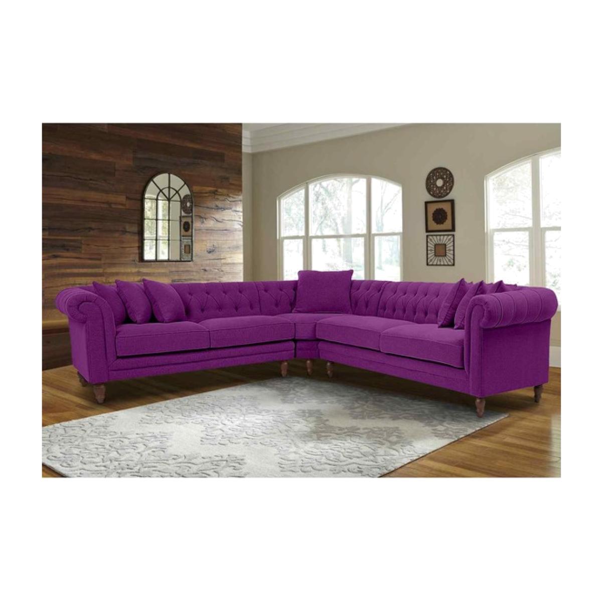 Elliot Chesterfield Corner Sofa in Velvet Fabric - Purple