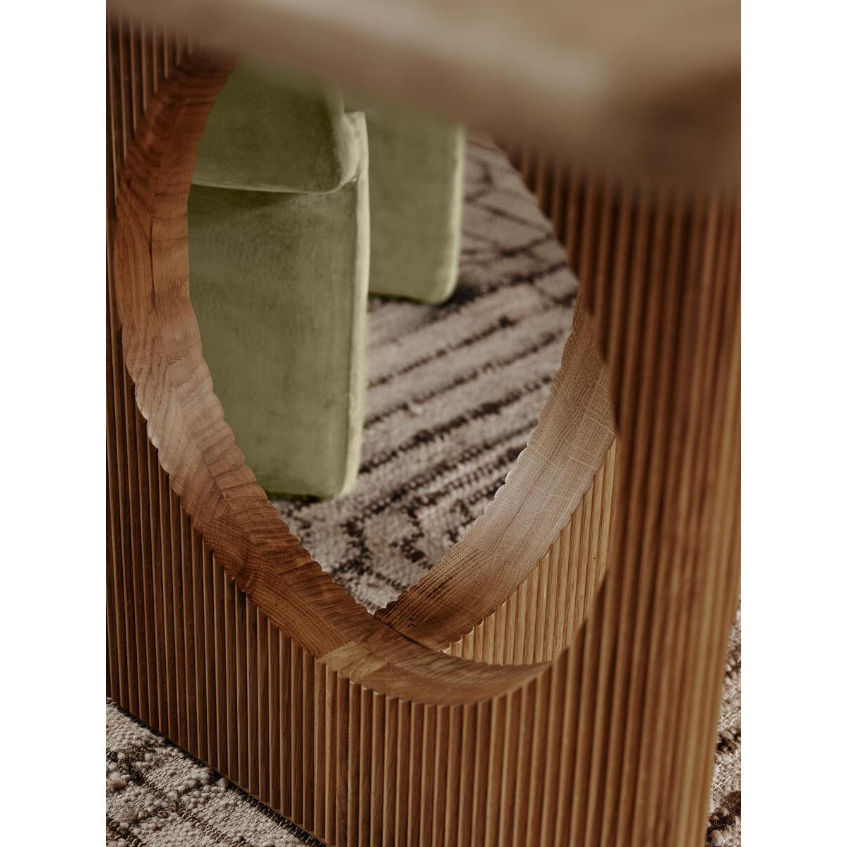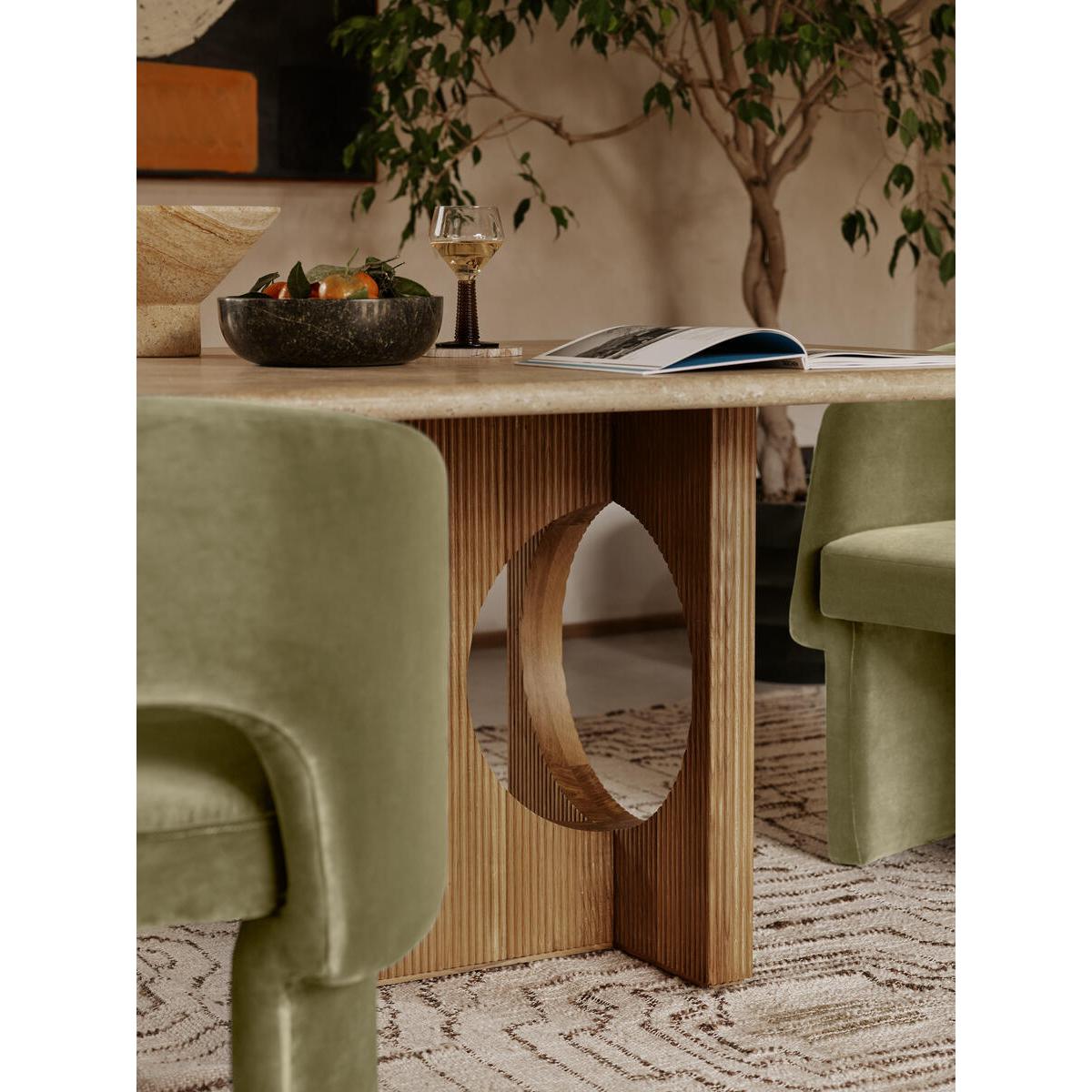 Gather up to eight people round the Elliot dining table to make every breakfast, lunch or dinner a memorable occasion. A honed, travertine-filled top sourced from Turkey beautifully offsets the solid oak frame, while a bull-nose edge and oval cut-out base accentuates the modern design. Place it in the centre of a dining area to recreate the restaurant settings at Soho House Rome. Solid oak base dining table Travertine marble sourced from Turkey Oval cut-out base Bull-nose edge Honed finish Seats six to eight people Inspired by Soho House Rome
