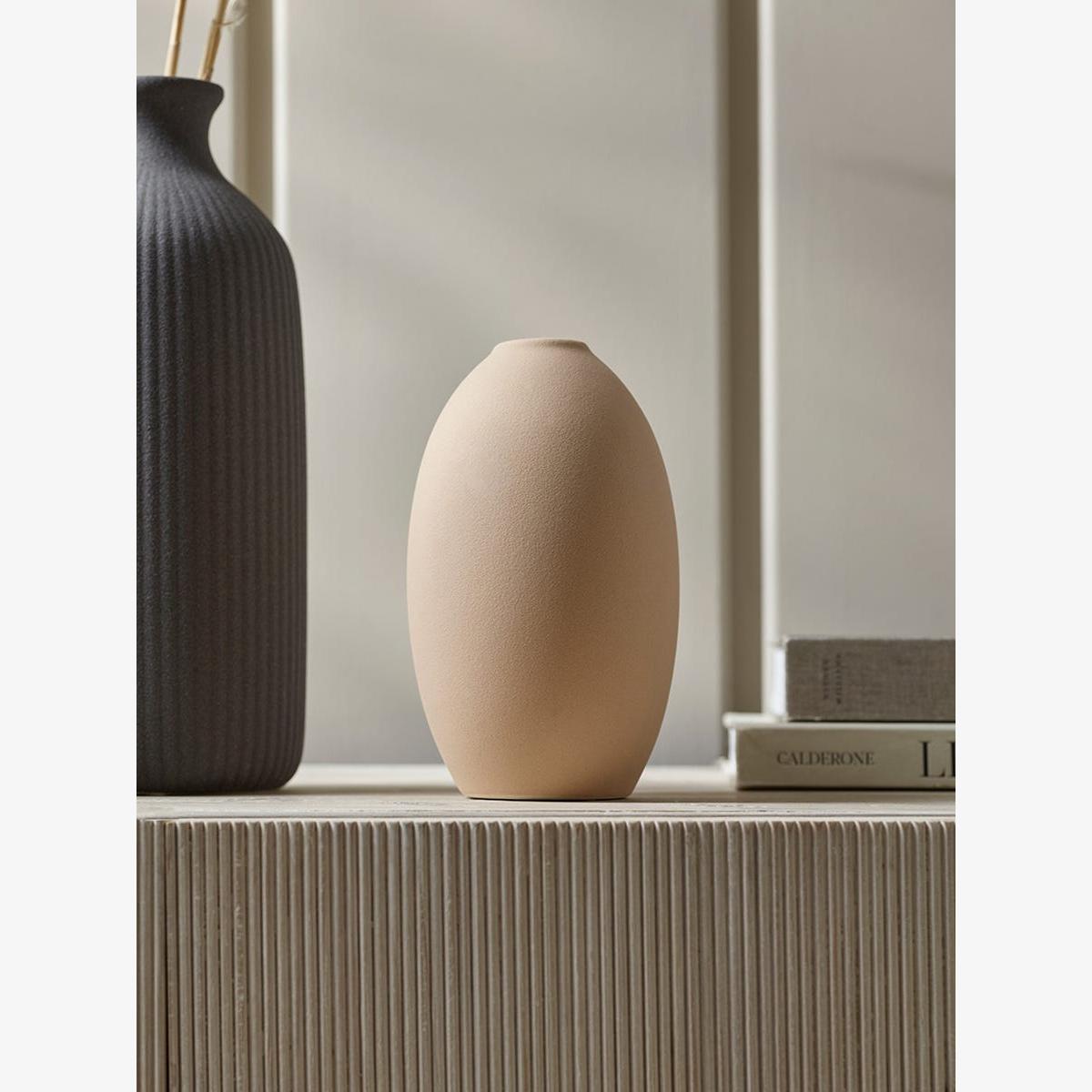 In an elongated cylindrical oval shape, our elegant and sophisticated Elliptical Bud Vase is crafted from ceramic in a neutral tone. Its simplicity and clean lines allow it to blend beautifully into a minimalist interior.