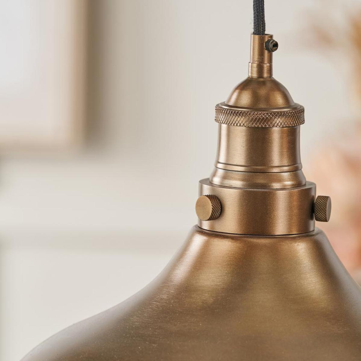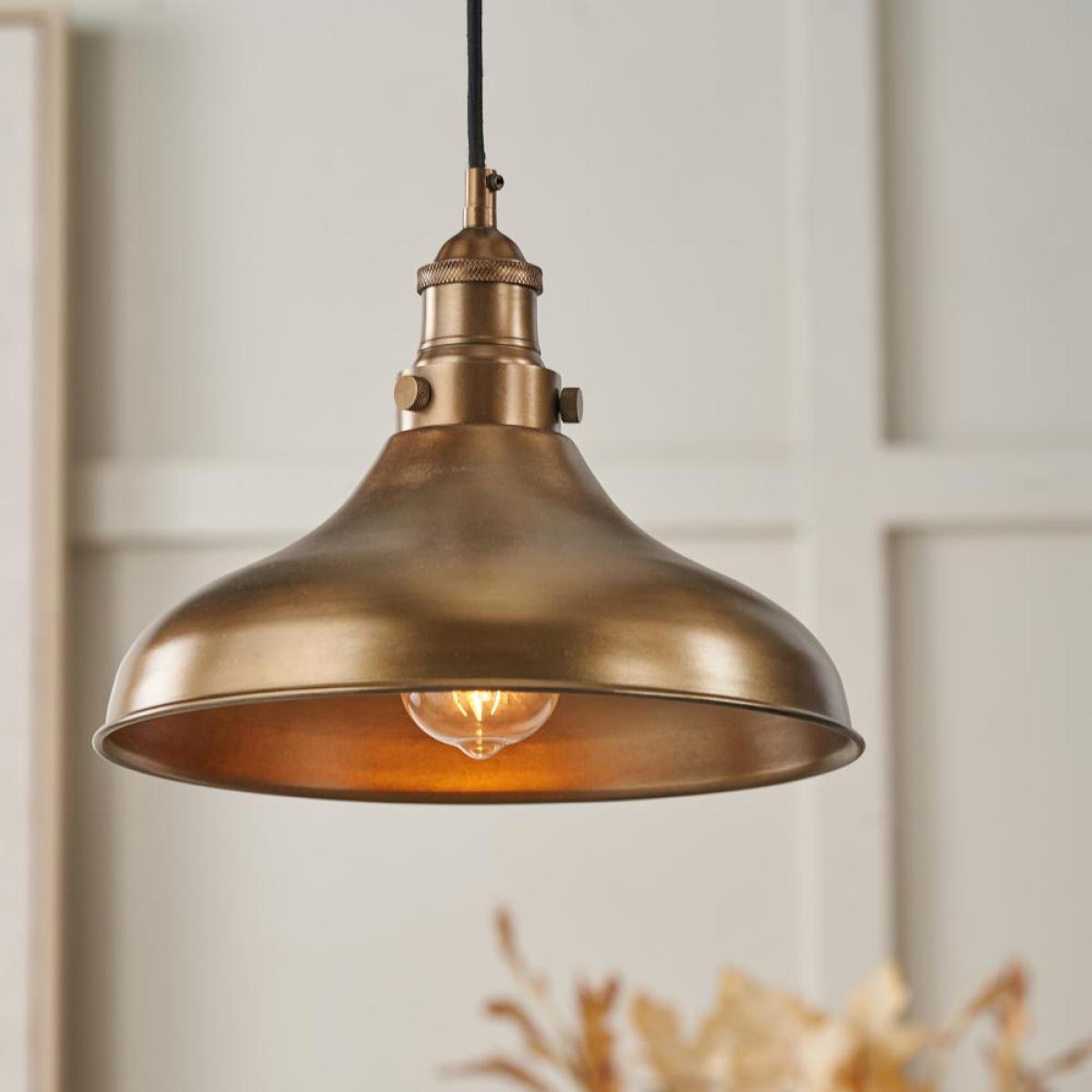 The Ellis pendant is a versatile piece that adds an industrial yet refined touch to a space with its antique brass finish. I love how it pairs well in both modern and vintage-inspired interiors, creating warm ambient lighting without overpowering the room. It works especially well in kitchens or dining areas as a statement piece, but can also bring character to a cosy living room or hallway. Practical styling tips include hanging it at eye level above a dining table or counter for focused illumination, and layer it with other brass or metallic accents to enhance its warm tone. Keep the surrounding decor simple and let the pendant shine as a focal point or part of a curated lighting scheme.