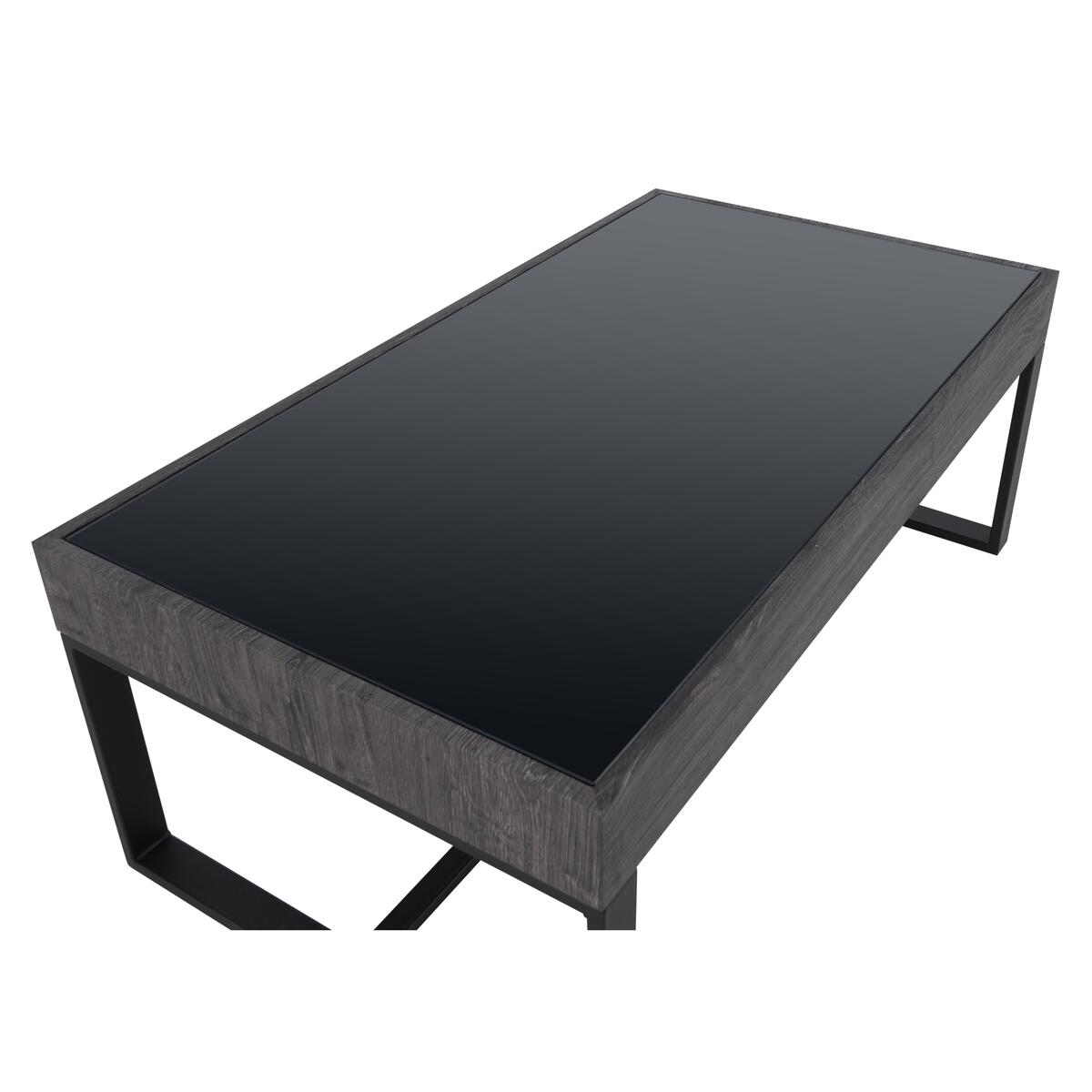 With its chunky top, mix of modern materials and overall industrial feel, the Ellis coffee table makes a big style statement. And we think you’ll find the price just as eye-catching. Why you’ll love it. Contemporary coffee table is a must-have for urban living spaces. Industrial look at a great-value price. Black Sonoma oak-effect frame, black-painted metal legs and black glass top. Easy to clean. Substantial in size with plenty of space for your living room bits and pieces. What you need to know. To clean, simply wipe with a soft and slightly damp cloth. To protect the surface, we recommend you use coasters under cups and glasses. Some assembly required. A matching lamp table is also available.