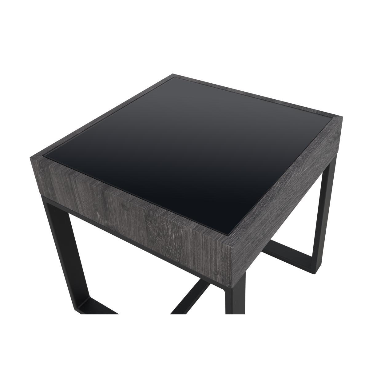 Looking to add just a touch of industrial style to your living space? Here it is. This lamp table has a black Sonoma oak-effect and glass top and a black metal base. Cool style at a great price. Why you’ll love it. Contemporary lamp table is a must-have for urban living spaces. Industrial look at a great-value price. Black Sonoma oak-effect frame, black-painted metal legs and black glass top. Easy to clean. The perfect size for a table lamp and a book or two. What you need to know. To clean, simply wipe with a soft and slightly damp cloth. To protect the surface, we recommend you use coasters under cups and glasses. A matching coffee table is also available.
