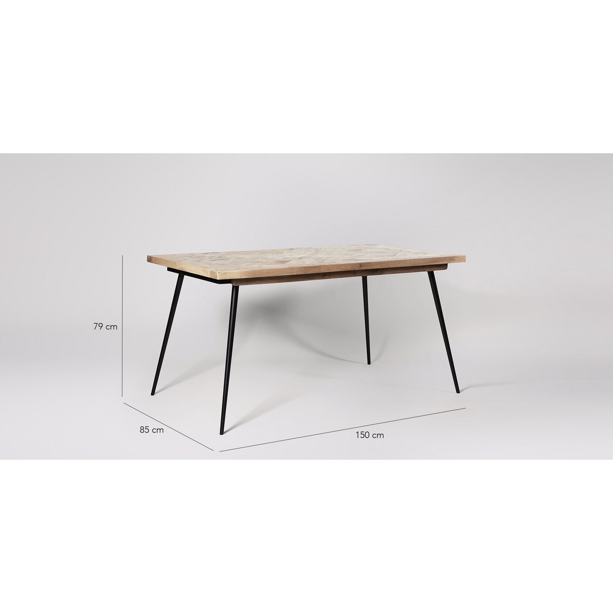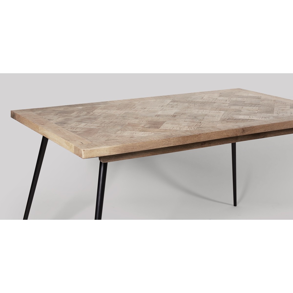 ?We love surprises, and the Ellis dining table has a pretty big one.?Wood and black metal are Industrial design’s greatest combination, but this is no ordinary industrial table. Head to the tabletop and it’s inlaid with classic parquet.?You might find nobody wants to leave the table.?