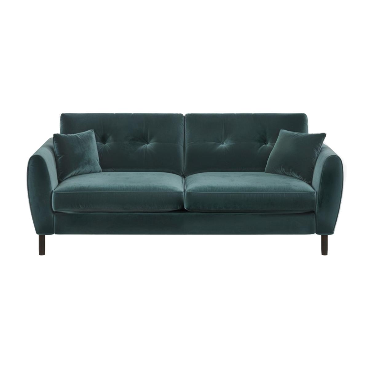 The Solace Co Ellison 3 Seater Sofa is a stunning blend of mid-century style and contemporary comfort. With its deep green velvet upholstery and elegant button detailing on the back cushions, this sofa adds a sophisticated touch to any living space. The Ellison comfortably seats three, making it perfect for both relaxing evenings and entertaining guests. Designed with convenience in mind, the sofa features removable cushion covers for easy maintenance and cleaning. Two plush scatter cushions are included, adding an extra layer of comfort and charm. The foam-filled seating ensures a soft yet supportive feel, providing the perfect spot to unwind. Assembly is hassle-free, with only the feet needing to be attached, allowing you to enjoy your new sofa in no time. Whether placed in a modern or classic setting, the Solace Co Ellison 3 Seater Green Velvet Sofa is a timeless addition that combines luxury and practicality.