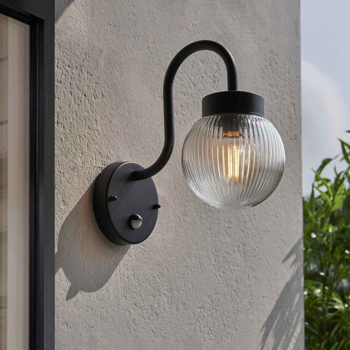 Stylish textured black wall light with built in adjustable PIR ideal for lighting exterior walkways or by an entrance. Clear ribbed glass and arched arm give this IP44 rated wall light a classic touch. Product Dimensions- W15xD29xH29cm Bulb Quantity- 1. Bulb Type- 10W LED E27. Dimmable- No. This product will be dispatched by one of our trusted suppliers. You’ll be contacted by their selected courier about your delivery. GALLE01
