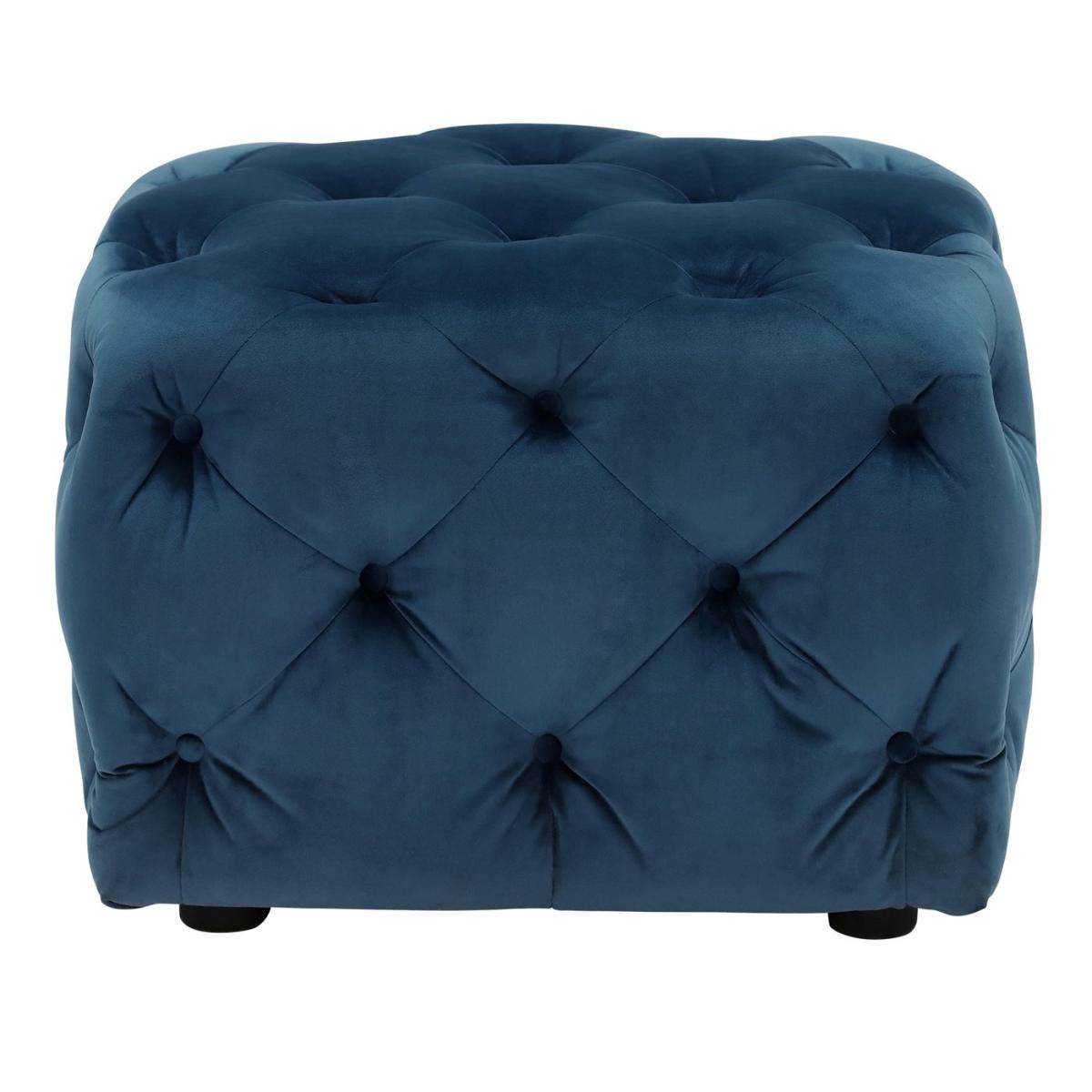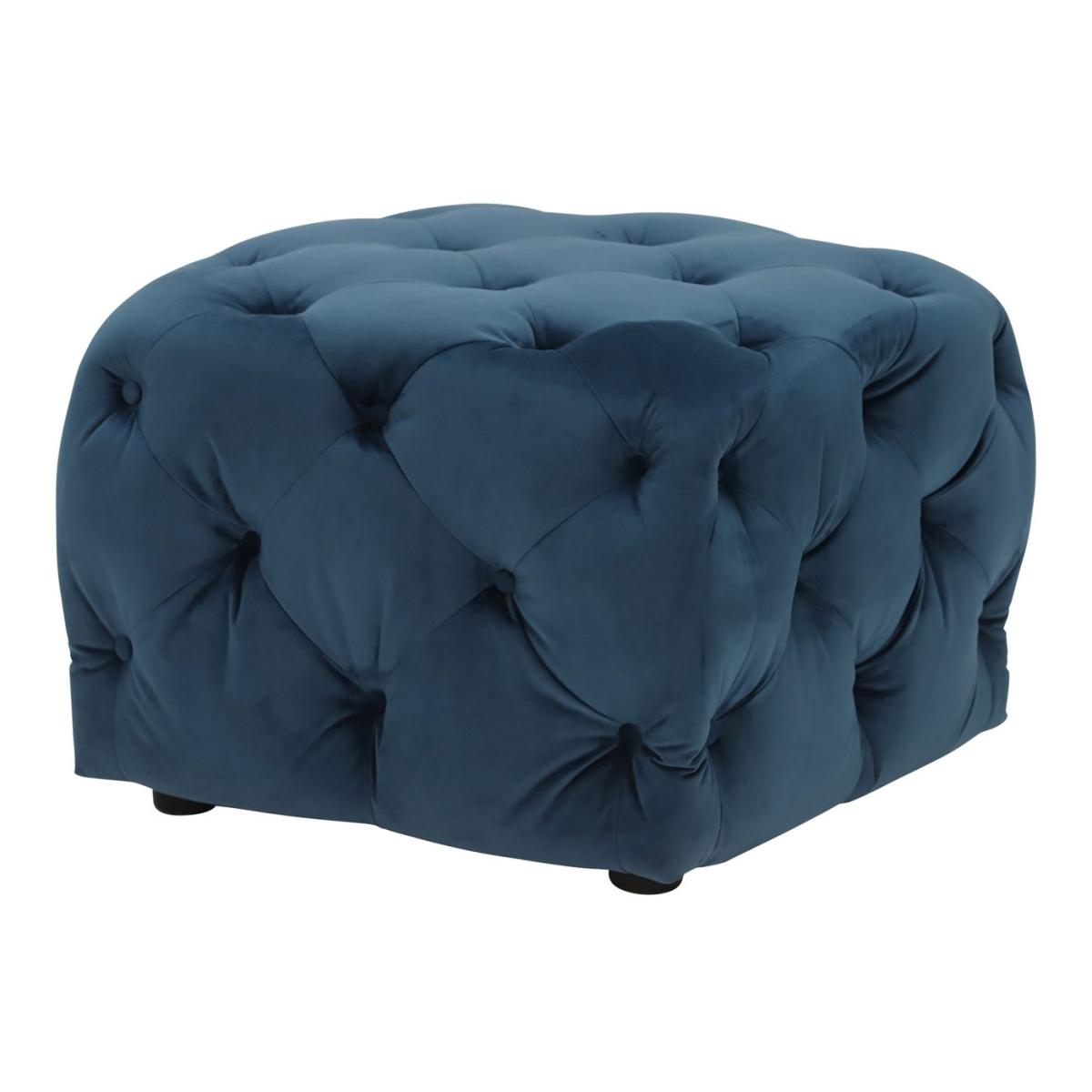 Ellonby Velvet Small Button Stool, Blue | Barker & Stonehouse